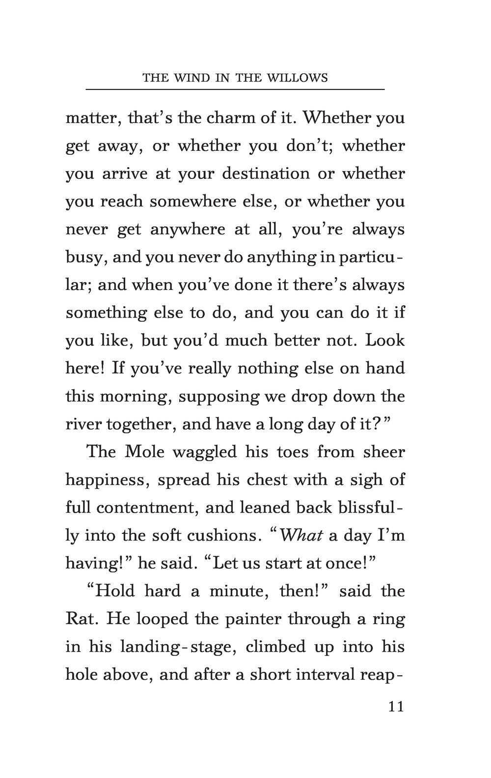 The animals' world embodies the author's wry, whimsical, and unfailingly inventive imagination. It is a world that succeeding generations of both adult and young readers have found irresistible. But why say more? To use the words of the estimable Mr. Toad himself: "Travel, change, interest, excitement!... Come inside."