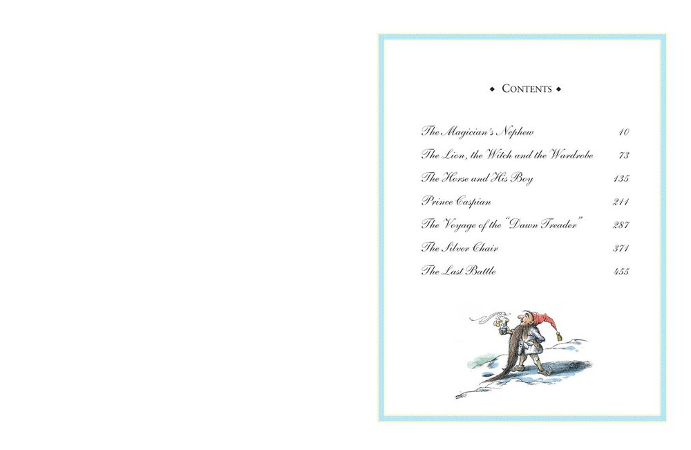 All seven tales in The Chronicles of Narnia are bound together, with full-colour illustrations, in one magnificent hardcover volume with a personal introduction by Douglas Gresham, stepson of C. S. Lewis. Talking beasts, heroic deeds and epic battles between good and evil await you in C. S. Lewis's classic fantasy series, which has been enchanting readers for over sixty years. This edition presents the seven books-The Magician's Nephew, The Lion, the Witch and the Wardrobe, The Horse and His Boy, Prince Caspian, The Voyage of the Dawn Treader, The Silver Chair, and The Last Battle-unabridged and arranged in C.S. Lewis's preferred order, featuring full-colour artwork by the original illustrator, Pauline Baynes.