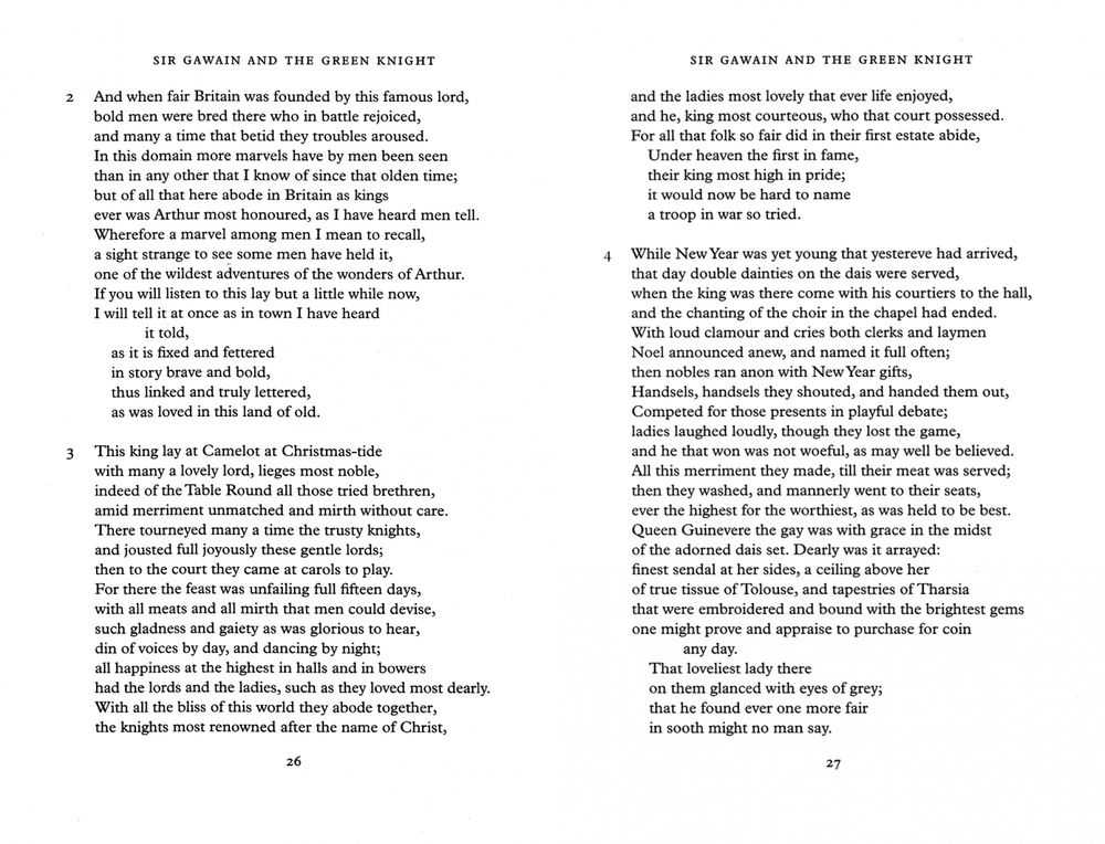 Sir Gawain and the Green Knight and Pearl are two poems by an unknown author written in about 1400. Sir Gawain is a romance, a fairy-tale for adults, full of life and colour; but it is also much more than this, being at the same time a powerful moral tale which examines religious and social values.