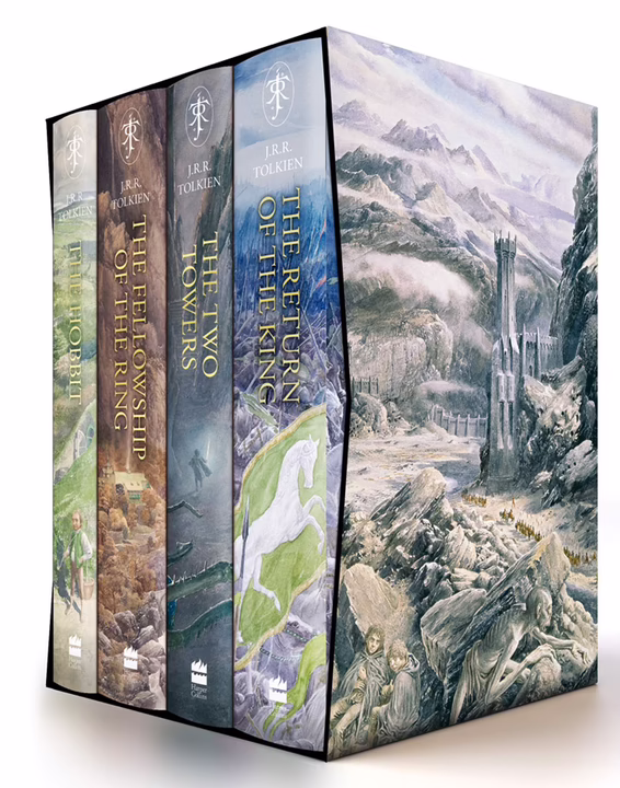 Now, the new hardback editions of these beautifully illustrated works have been collected together into one boxed set of four books. Readers will be able to follow the complete story of the Hobbits and their part in the quest for the Ring – beginning with Bilbo's fateful visit from Gandalf and culminating in the dramatic climax between Frodo and Gollum atop Mount Doom – while also enjoying over seventy full-page colour paintings and numerous illustrations which accompany this epic tale.