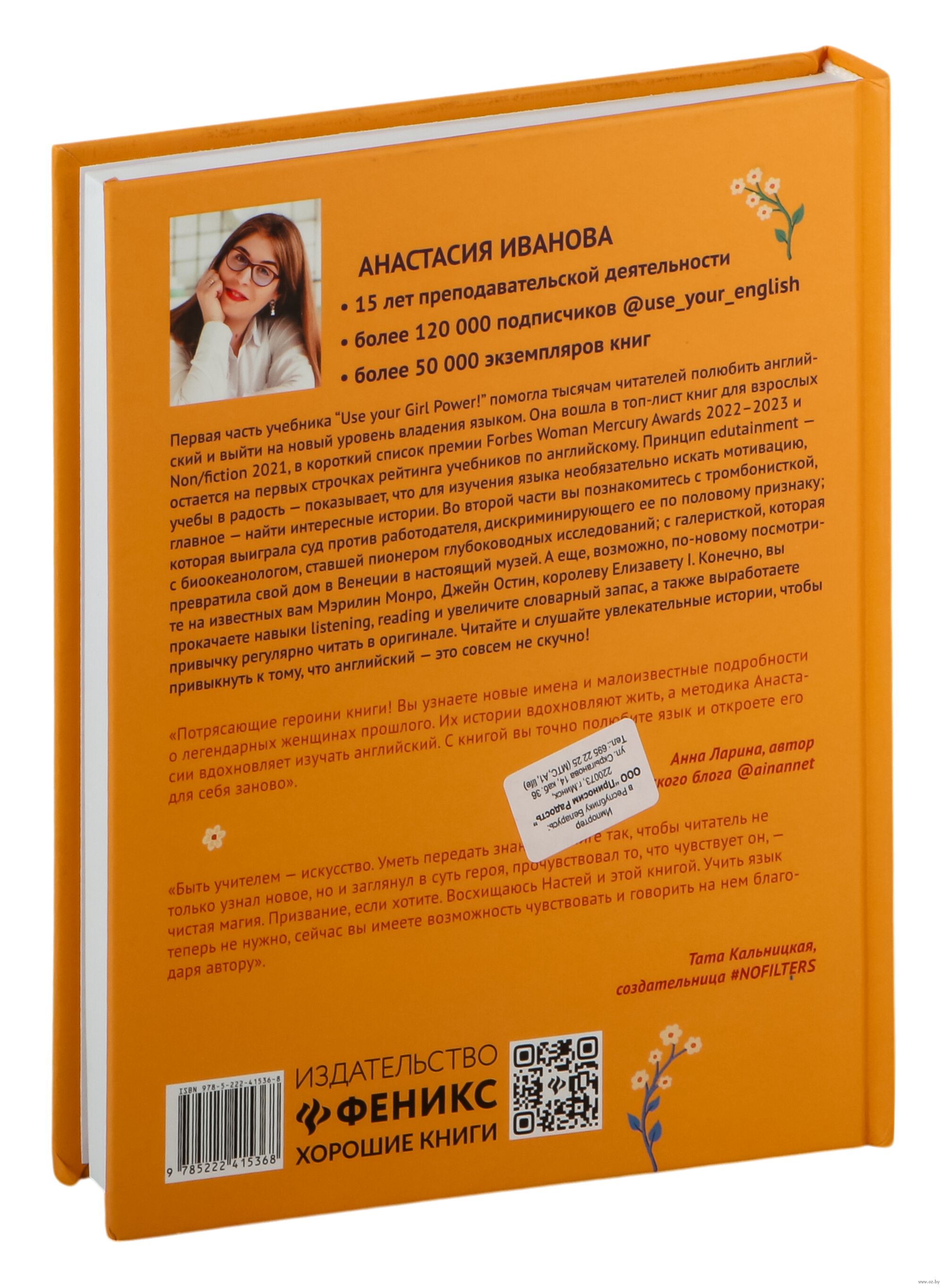Первая часть "Use your Girl Power!" помогла тысячам читателей полюбить английский и выйти на новый уровень владения языком. Она вошла в топ-лист книг для взрослых Non/fiction 2021, в короткий список премии Forbes Woman Mercury Awards 2022/2023 и остается на первых строчках рейтинга учебников по английскому. Принцип edutainment – учебы в радость – показывает, что для изучения языка необязательно искать мотивацию, главное – найти интересные истории.