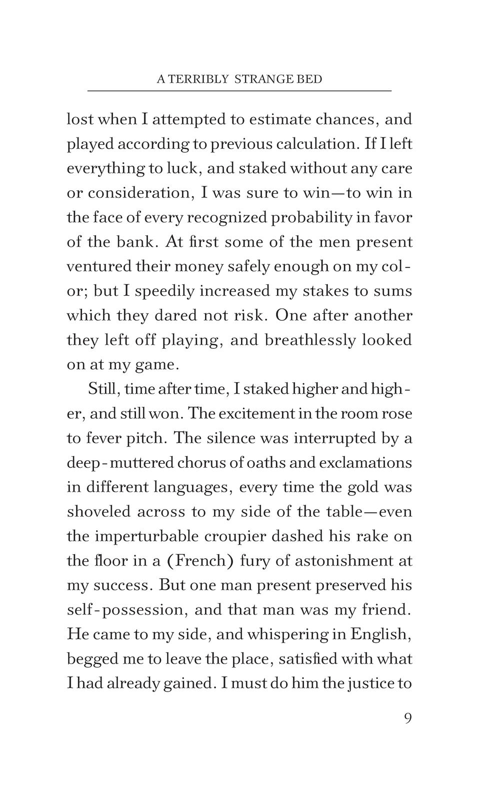 Сборник включает в себя четыре рассказа Уилки Коллинза: "The Traveller's Story of a Terribly Strange Bed" – рассказ о жажде денег, которая не остановится перед убийством, "The Professor's Story of the Yellow Mask" – история о коварстве итальянского священника и любви, слепой к сословным предрассудкам, "The Angler's Story of the Lady of Glenwith Grange" – в котором предательство и обман приводят к катастрофическим последствиям, и "The Nun's Story of Gabriel's Marriage" – рассказ о смертном грехе отца, лишившем покоя сына.