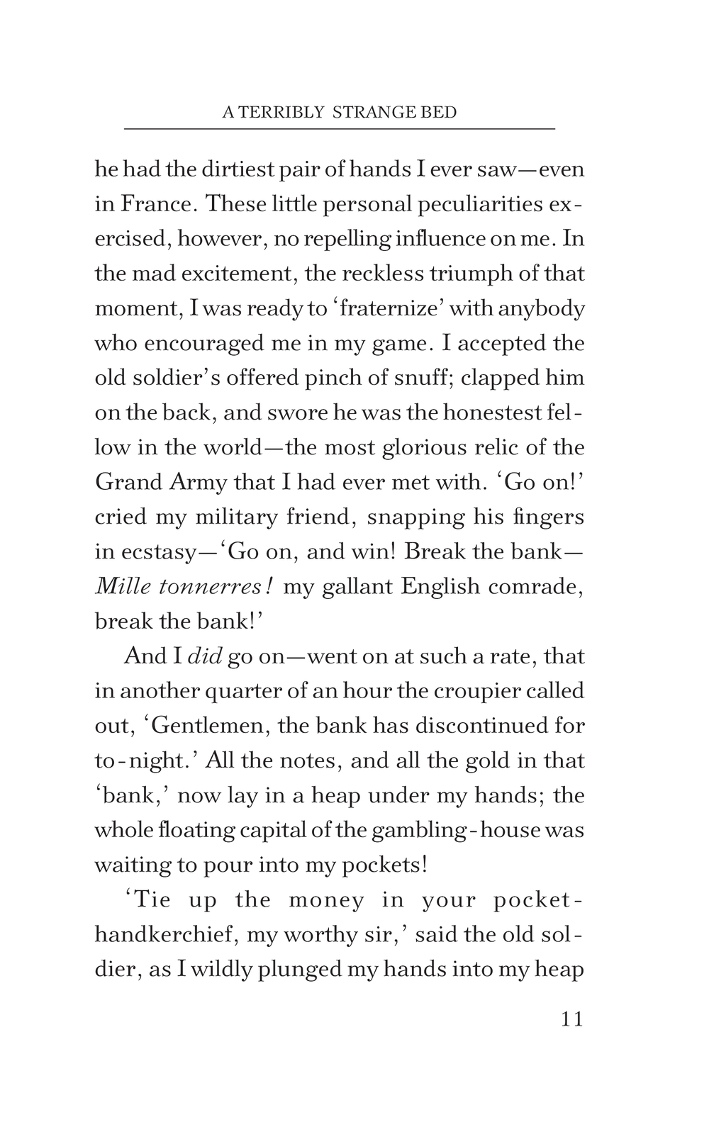 Сборник включает в себя четыре рассказа Уилки Коллинза: "The Traveller's Story of a Terribly Strange Bed" – рассказ о жажде денег, которая не остановится перед убийством, "The Professor's Story of the Yellow Mask" – история о коварстве итальянского священника и любви, слепой к сословным предрассудкам, "The Angler's Story of the Lady of Glenwith Grange" – в котором предательство и обман приводят к катастрофическим последствиям, и "The Nun's Story of Gabriel's Marriage" – рассказ о смертном грехе отца, лишившем покоя сына.