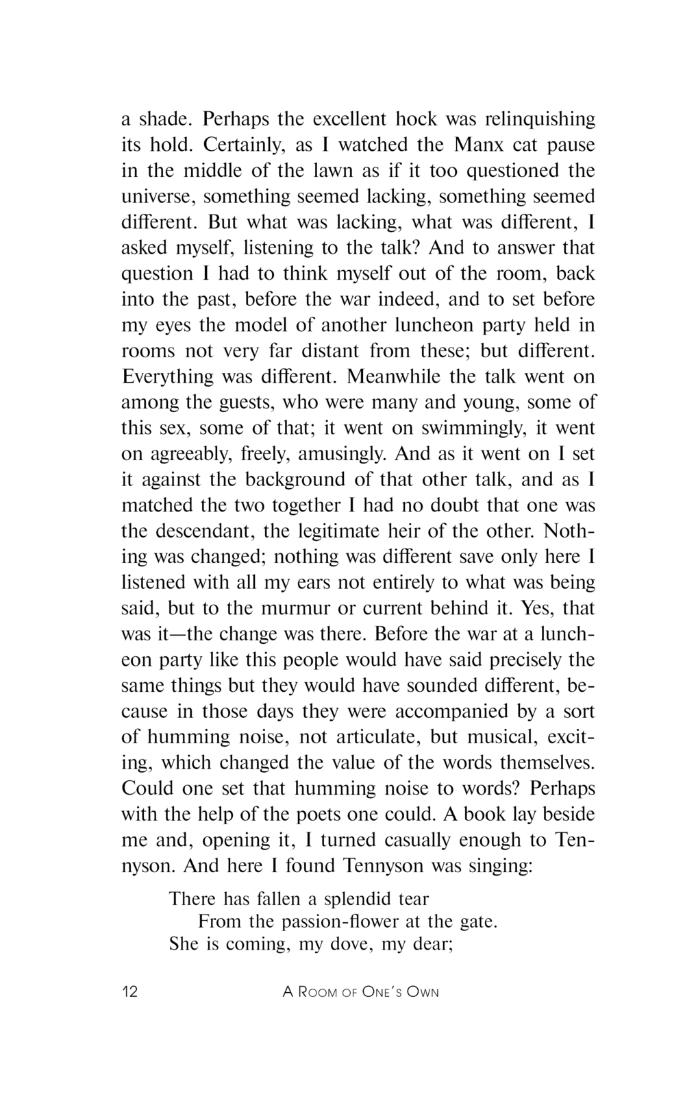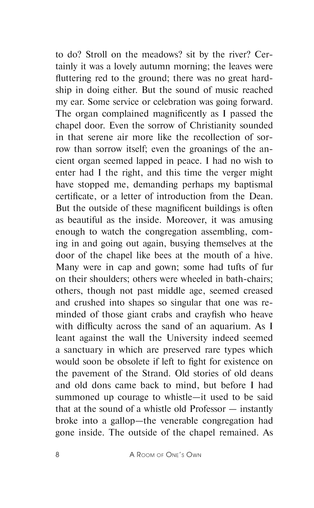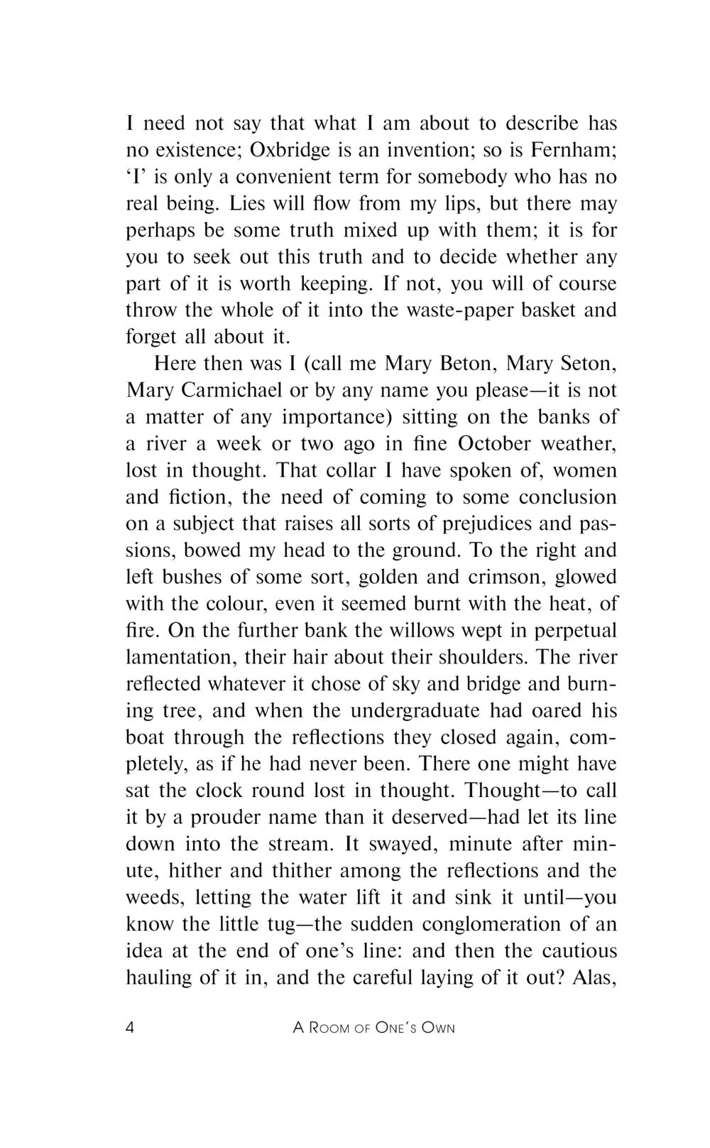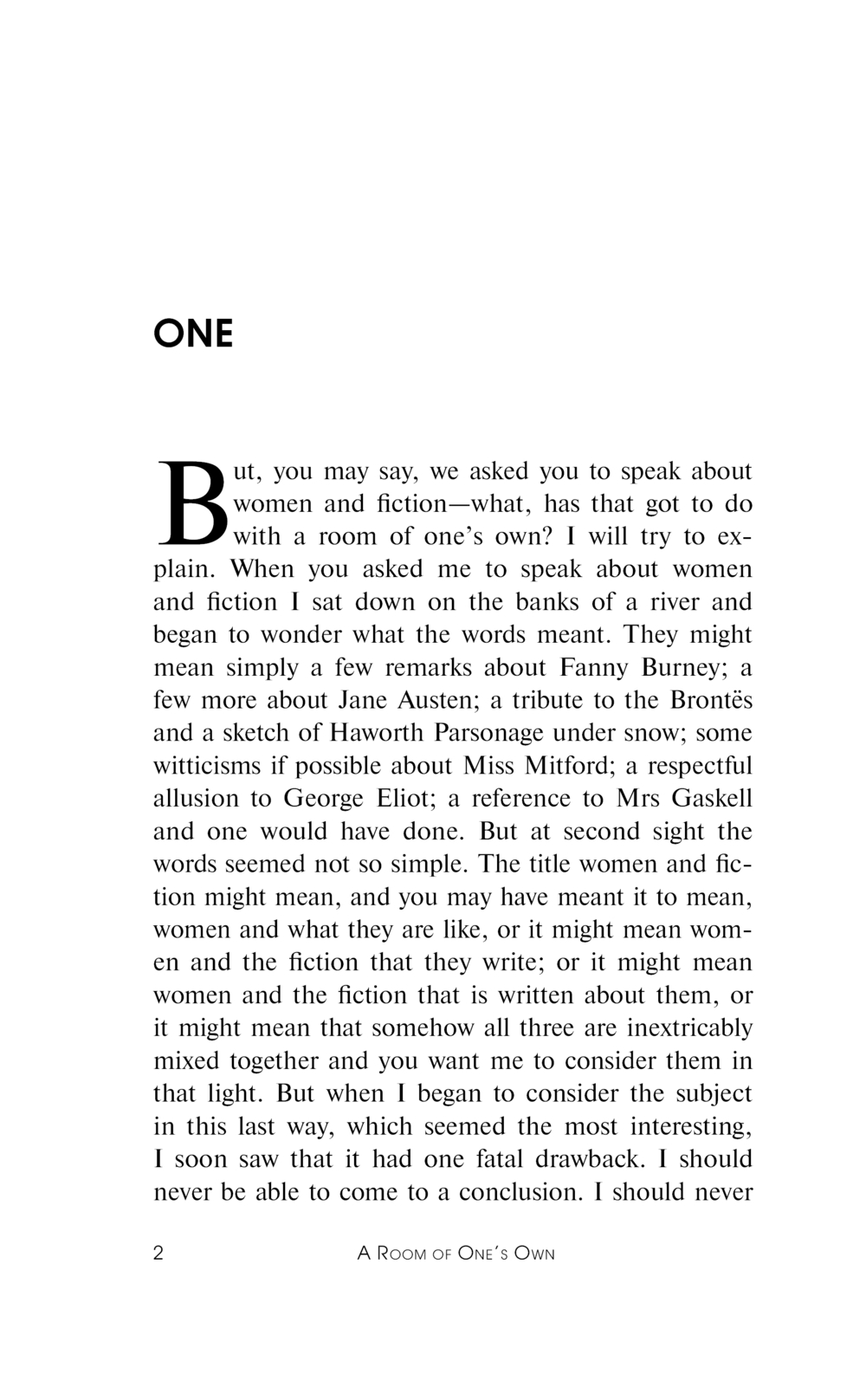 "Своя комната" – эссе, выросшее из двух лекций, прочитанных Вулф студентам Кембриджа в 1928 году, которое ныне считается одним из самых значимых феминистских текстов двадцатого века. Именно в нем Вулф провозгласила, что "если женщина хочет писать книги, ей понадобятся деньги и собственная комната".