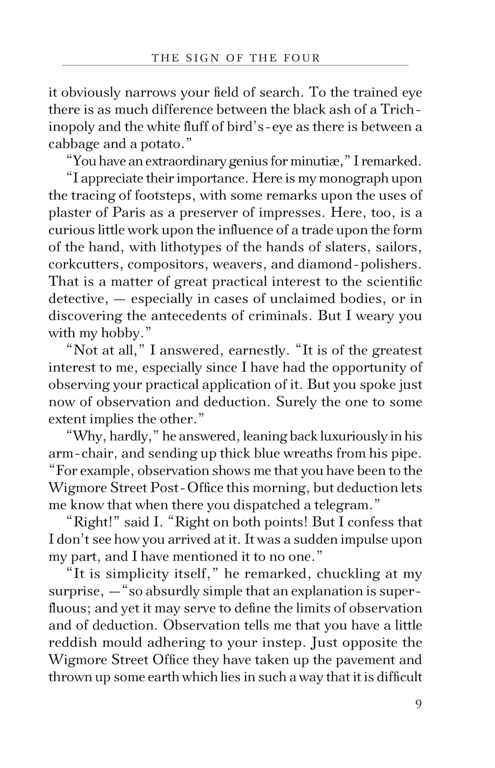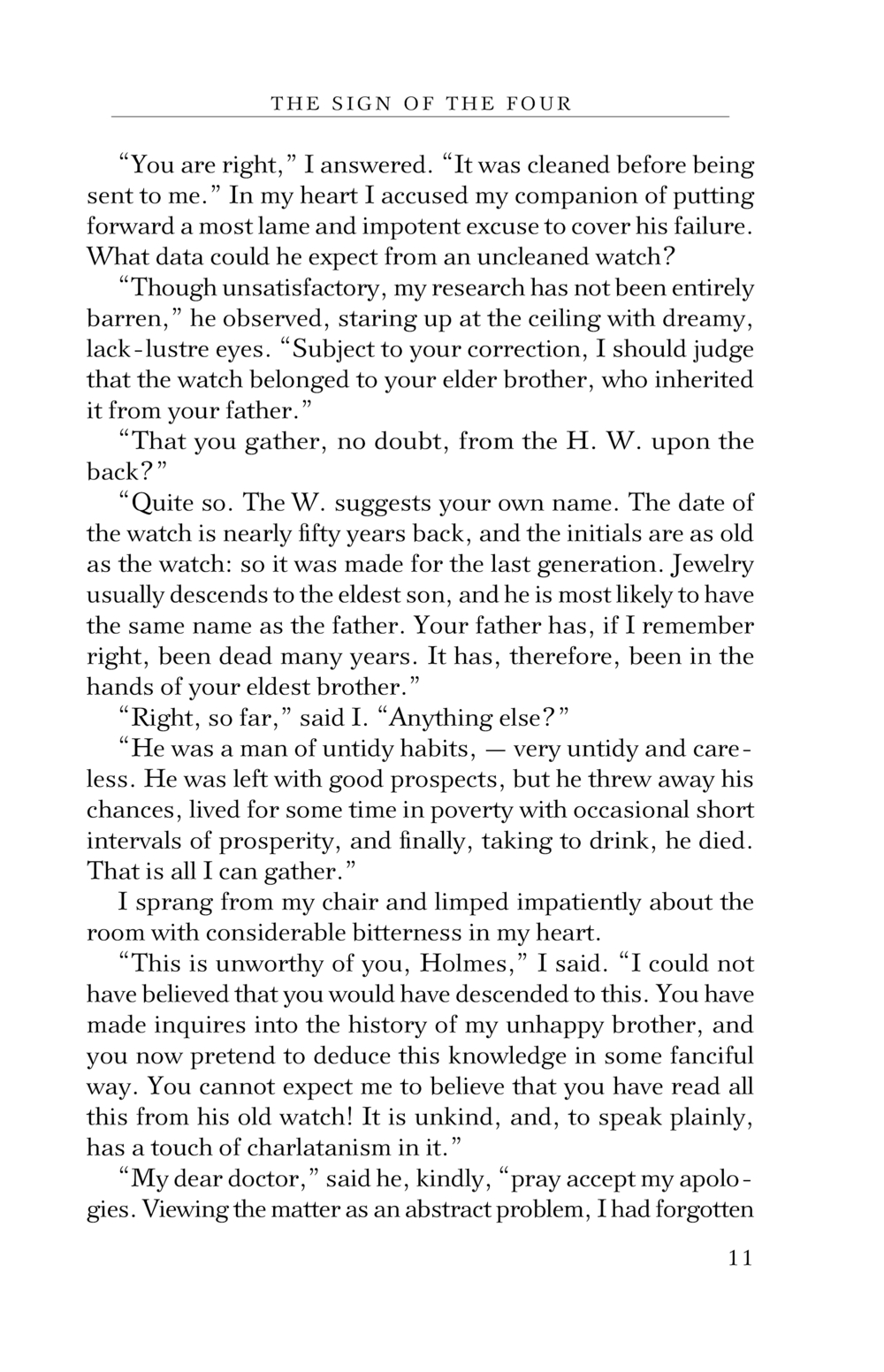 Чтение художественной литературы в оригинале – прекрасный способ совершенствовать английский язык. Блестящий стиль, интригующий сюжет и обаятельные персонажи детективных рассказов знаменитого британского писателя Артура Конана Дойла не дадут оторваться от книги ни на минуту. "Знак четырех" – это вторая повесть о приключениях Шерлока Холмса и доктора Ватсона. В ней прославленный детектив и его верный друг расследуют тайну анонимных посланий, которые получает их клиентка Мэри Морстен. Чтобы выяснить правду героям придется распутать сеть интриг и предательств, ведущих к давно забытому преступлению. Также в книгу вошел сборник рассказов "Записки о Шерлоке Холмсе".