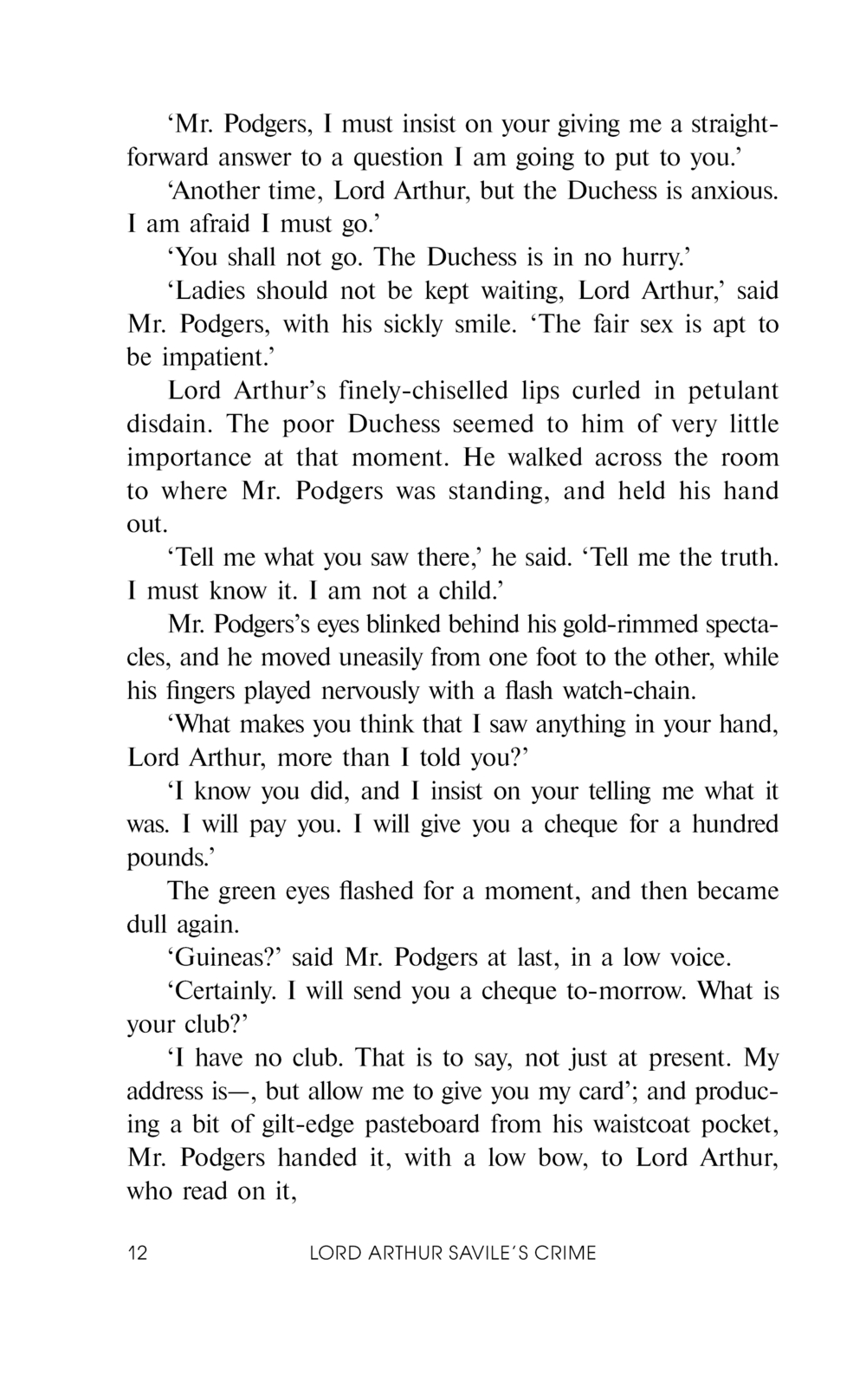 В данном сборнике вы найдёте следующие произведения: "Преступление лорда Артура Сэвила", "Кентервильское привидение", "Сфинкс без загадки", "Натурщик-миллионер" и "Портрет г-на У. Х.".
