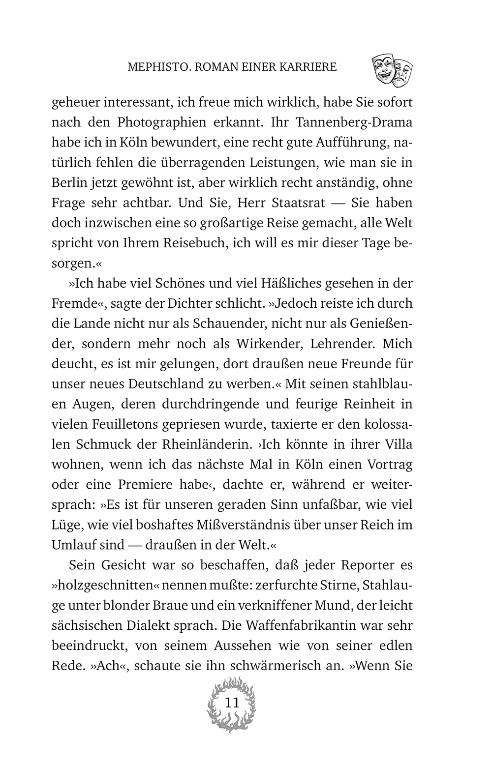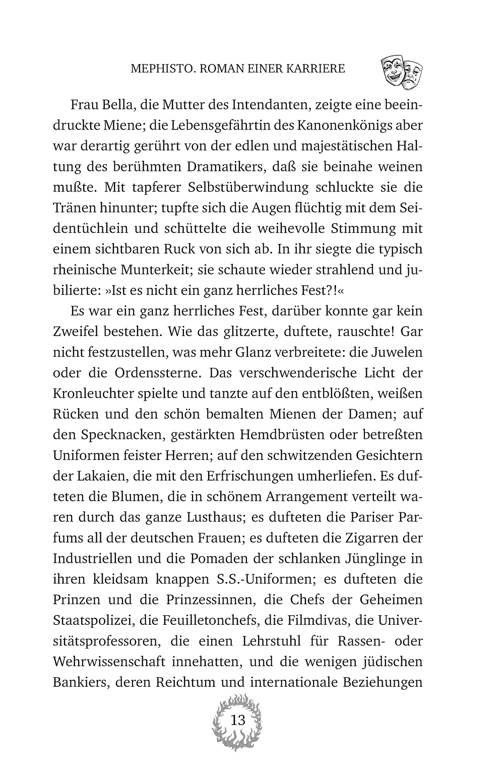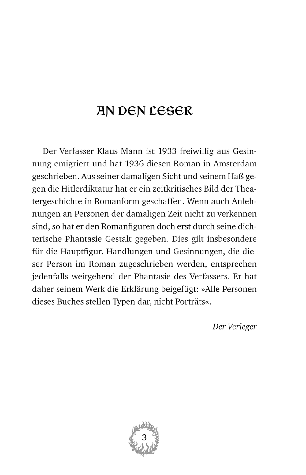 Действие романа происходит в мрачной и опасной обстановке Германии 1930-х годов, где талантливый актер столичного театра Хендрик Хефген предает своих близких и свои идеалы, идет на сотрудничество с нацистами ради выживания, высокого положения в театральном мире и денег.