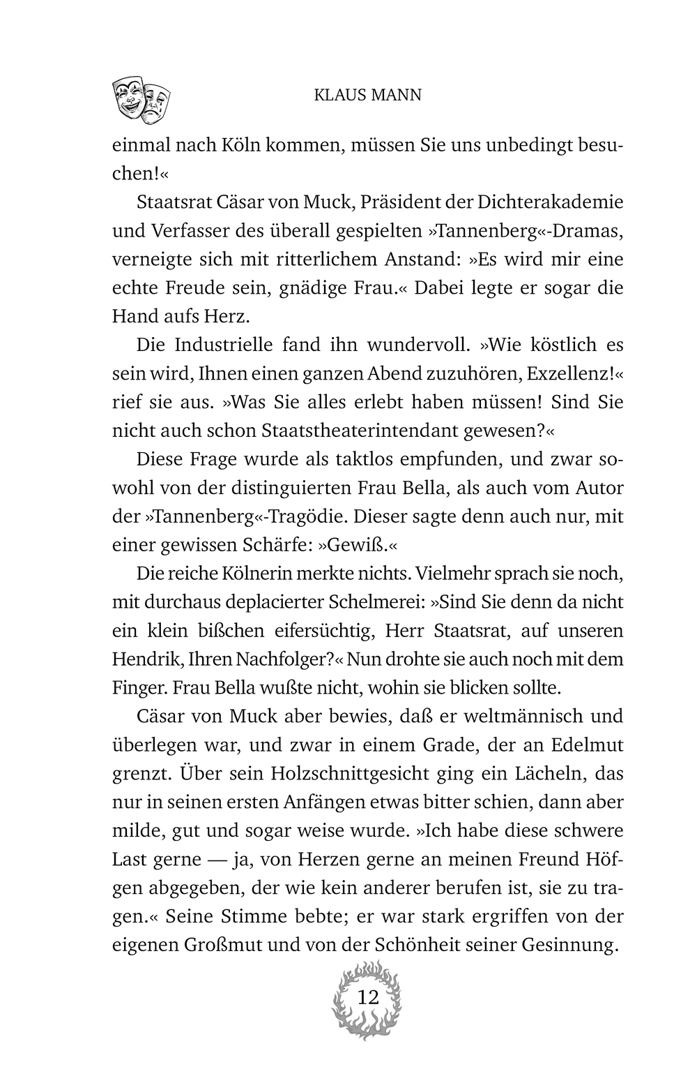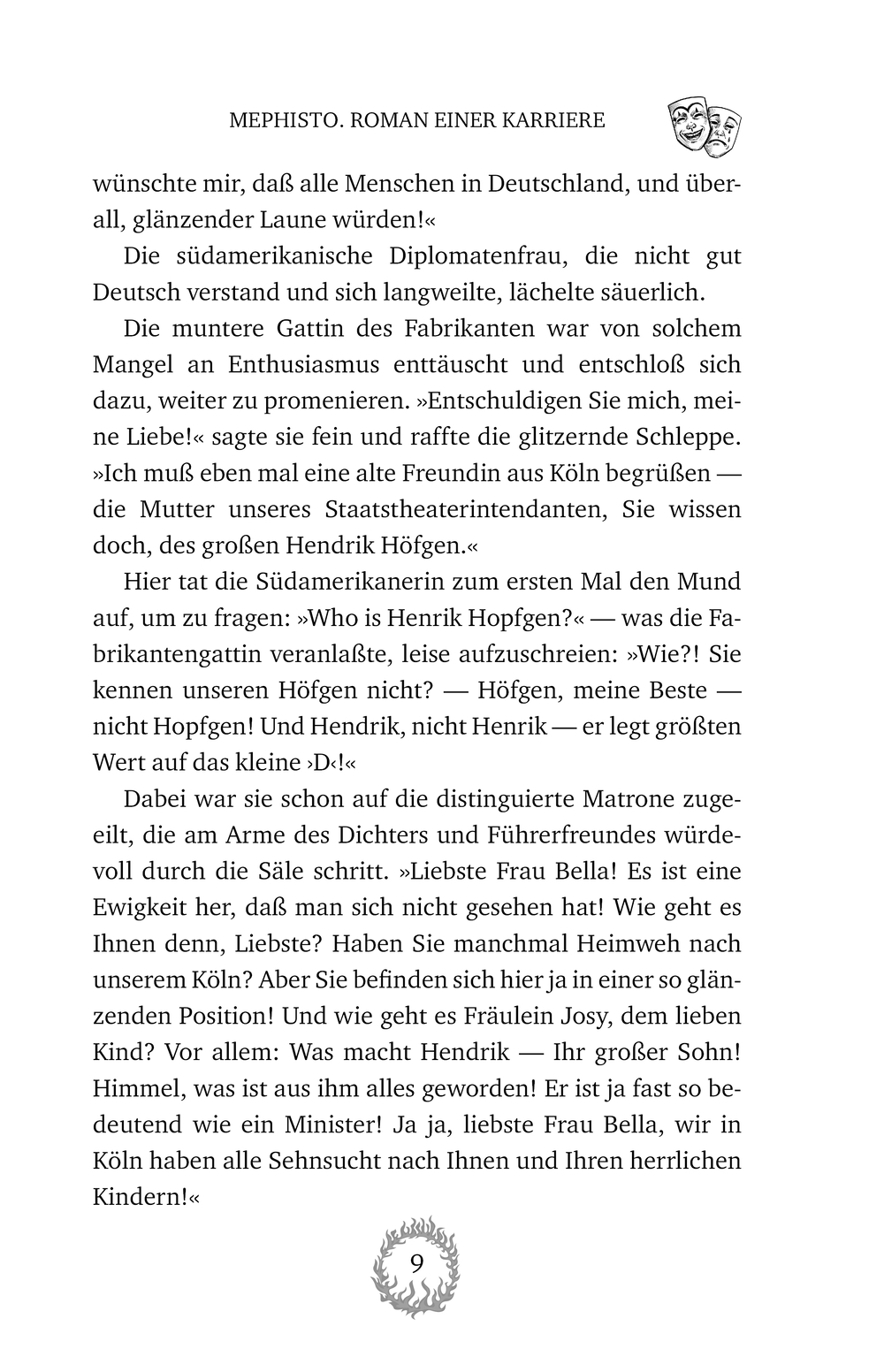Главный герой, прототипом которого является актер Густав Грюндгенс, становится символом конформизма и нравственного падения. Манн мастерски изображает внутреннюю борьбу Хефгена, его страхи и амбиции, показывая, как легко человек может поддаться тьме, променяв свою душу на успех и материальные блага.