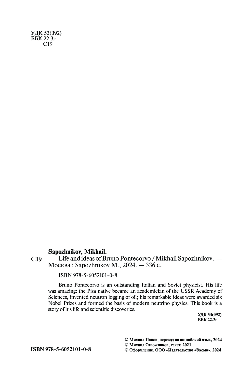 | Название в оригинале | Жизнь и идеи Бруно Понтекорво |