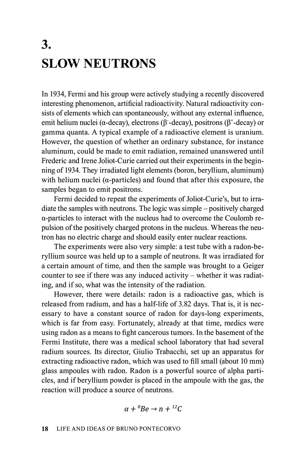 Bruno Pontecorvo is an outstanding Italian and Soviet physicist. His life is amazing: he was born in Pisa, graduated from the University of Rome, worked together with Enrico Fermi and Joliot-Curie. During World War II he emigrated to the United States, where he worked for an oil company and invented the neutron oil logging method. Pontecorvo was involved in the English atomic project Tube Alloys and when he and his wife and three children suddenly emigrated to the USSR in 1950, suspicions of espionage were immediately aroused. Especially since for the next five years no one knew where Pontecorvo was or what he was doing. The book contains archival documents showing that all these years Pontecorvo was busy with research in the field of particle physics and had nothing to do with Soviet atomic spies or the creation of the atomic bomb in the USSR. Pontecorvo's remarkable ideas formed the basis of modern neutrino physics, and were the basis for today's extensive programme of research on neutrino physics. Six Nobel Prizes were awarded for experimental verification of Pontecorvo's ideas. This book is an account of his life and scientific discoveries.