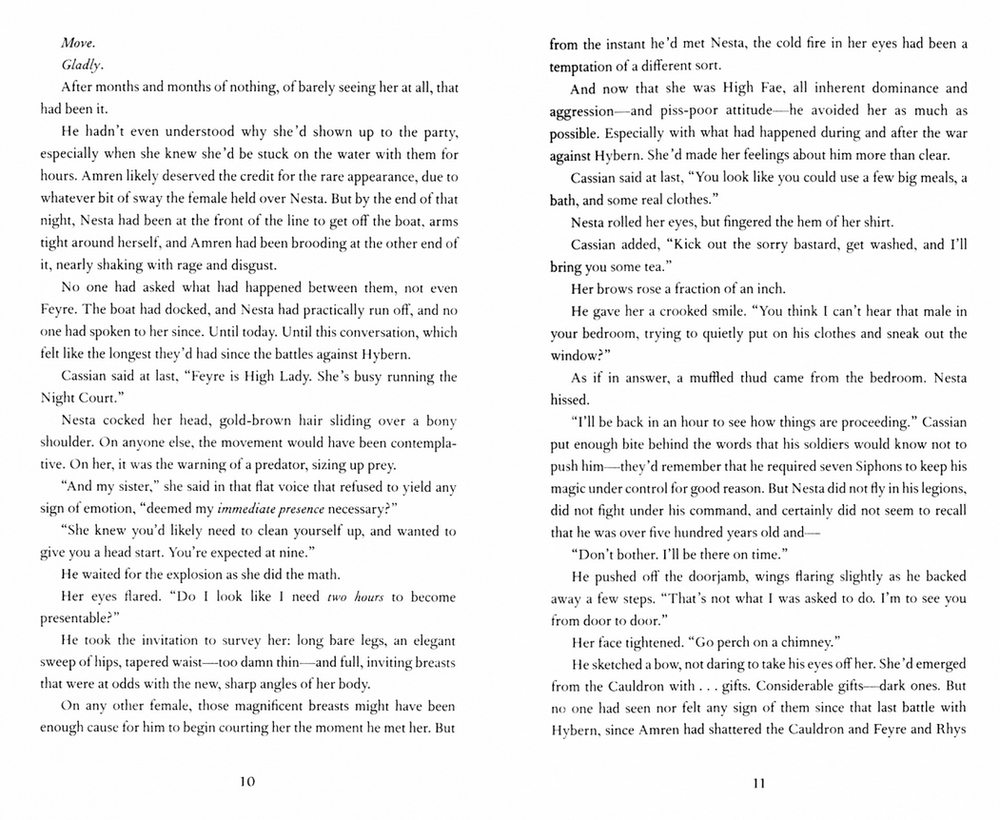Фейра – охотница. Шкура волка принесет достаточно золота, чтобы прокормить ее сестер в течение месяца. Но жизнь волшебного существа обходится дорого, и Фейра только что убила не того волка... Следуйте за путешествием Фейры в опасный и манящий мир Фейри, где она потеряет свое сердце, столкнется со своими демонами и узнает, на что она действительно способна."