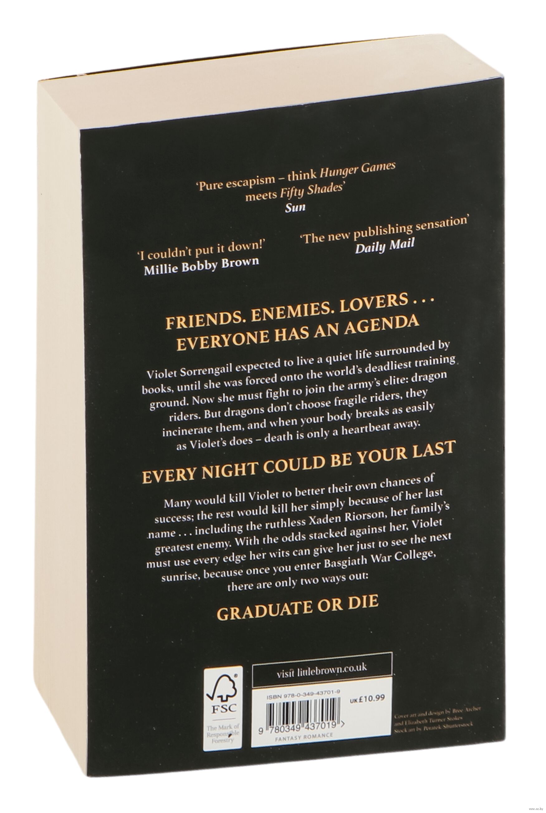Welcome to the brutal and elite world of Basgiath War College . . .Twenty-year-old Violet Sorrengail was supposed to enter the Scribe Quadrant, living a quiet life among books and history. Now, the commanding general – also known as her tough-as-talons mother – has ordered Violet to join the hundreds of candidates striving to become the elite of Navarre: dragon riders.