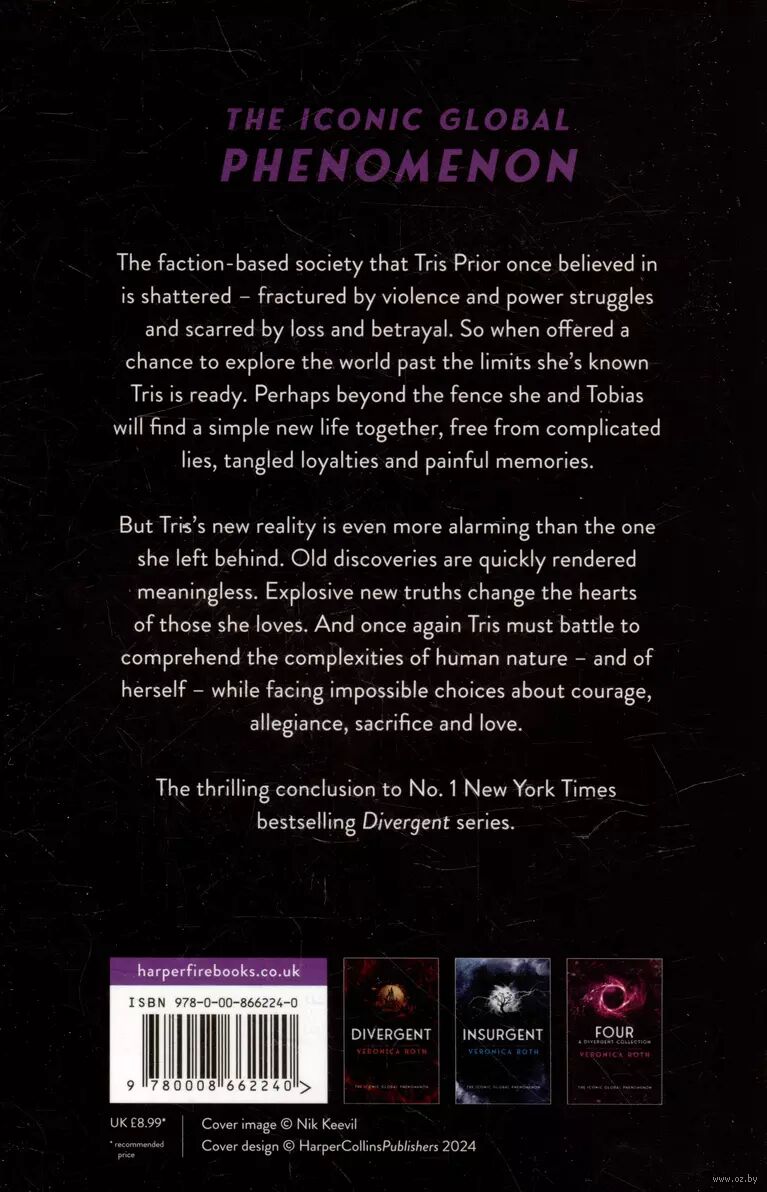 But Tris's new reality is even more alarming than the one she left behind. Old discoveries are quickly rendered meaningless. Explosive new truths change the hearts of those she loves. And once again, Tris must battle to comprehend the complexities of human nature – and of herself – while facing impossible choices about courage, allegiance, sacrifice and love.