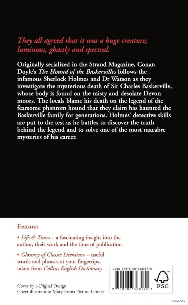 Роман Конан Дойла "Собака Баскервилей", впервые опубликованный в журнале "Стрэнд", рассказывает об известном сыщике Шерлоке Холмсе и докторе Ватсоне, расследующих загадочную смерть сэра Чарльза Баскервиля, чье мертвое тело было найдено на туманных и пустынных девонских пустошах.