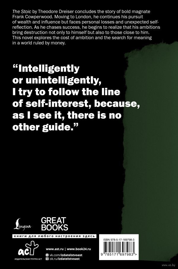 Роман "Стоик" – это не только остросюжетная история становления и падения одного человека, но и глубокое размышление о смысле жизни, цене успеха и неизбежности судьбы.