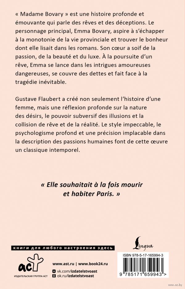 Гюстав Флобер создал не просто историю одной женщины, но и глубокое размышление о природе желаний, разрушительной силе иллюзий и столкновении мечты с реальностью. Безупречный стиль, глубокий психологизм и беспощадная точность в описании человеческих страстей делают это произведение непреходящей классикой.