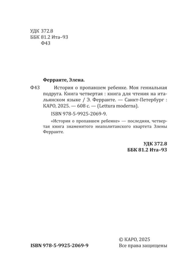 Четвёртая книга для изучения иностранного языка из цикла «Неаполитанский квартет».