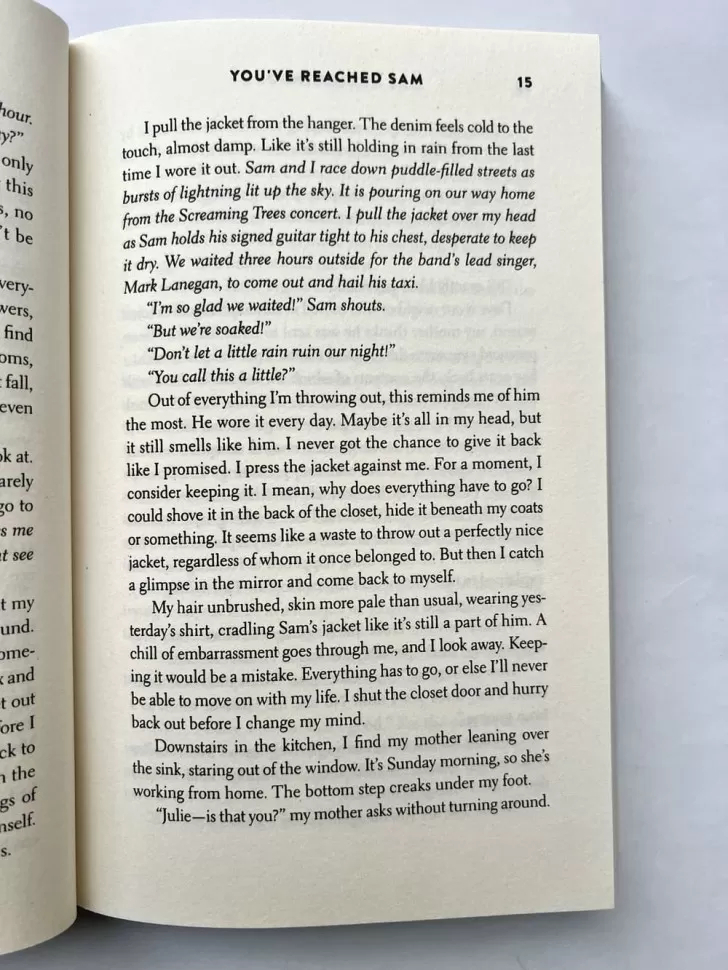 У семнадцатилетней Джули Кларк все хорошо, она планирует уехать из маленького городка со своим парнем Сэмом и поступить в городской колледж. Но внезапно Сэм погибает… Убитая горем Джули старается забыть Сэма: не идет на похороны, выбрасывает его вещи. После встречи с кузеном Сэма, который расстроен из-за того, что Джули отказалась скорбеть по Сэму, Джули чувствует себя предателем. Тогда Джули отчаянно звонит на номер Сэма. К ее удивлению, он отвечает ей.