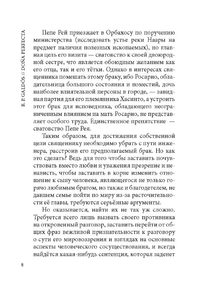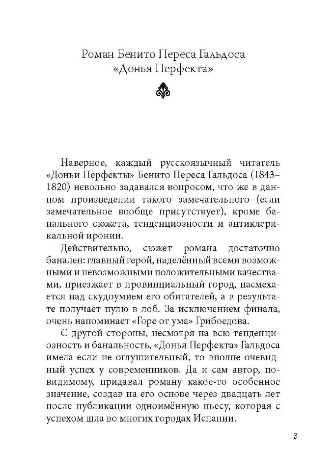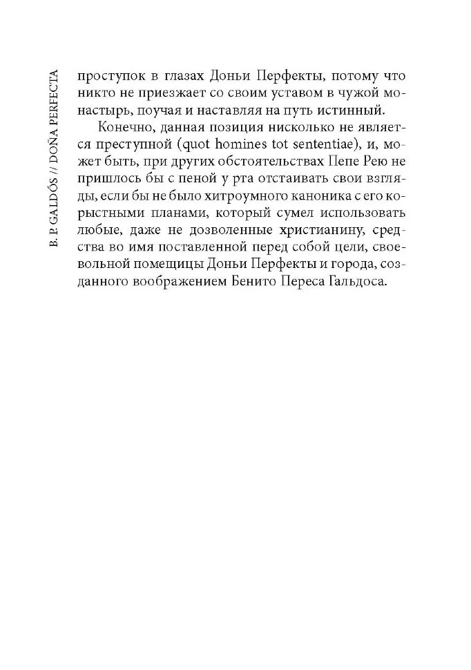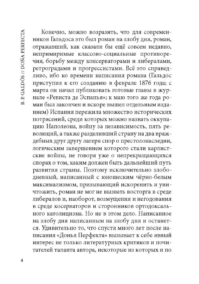 Бенито Перес Гальдос наиболее значительный представитель критического реализма в Испании. Его роман "Донья Перфекта" – первый опыт писателя в жанре социально-тенденциозного романа.