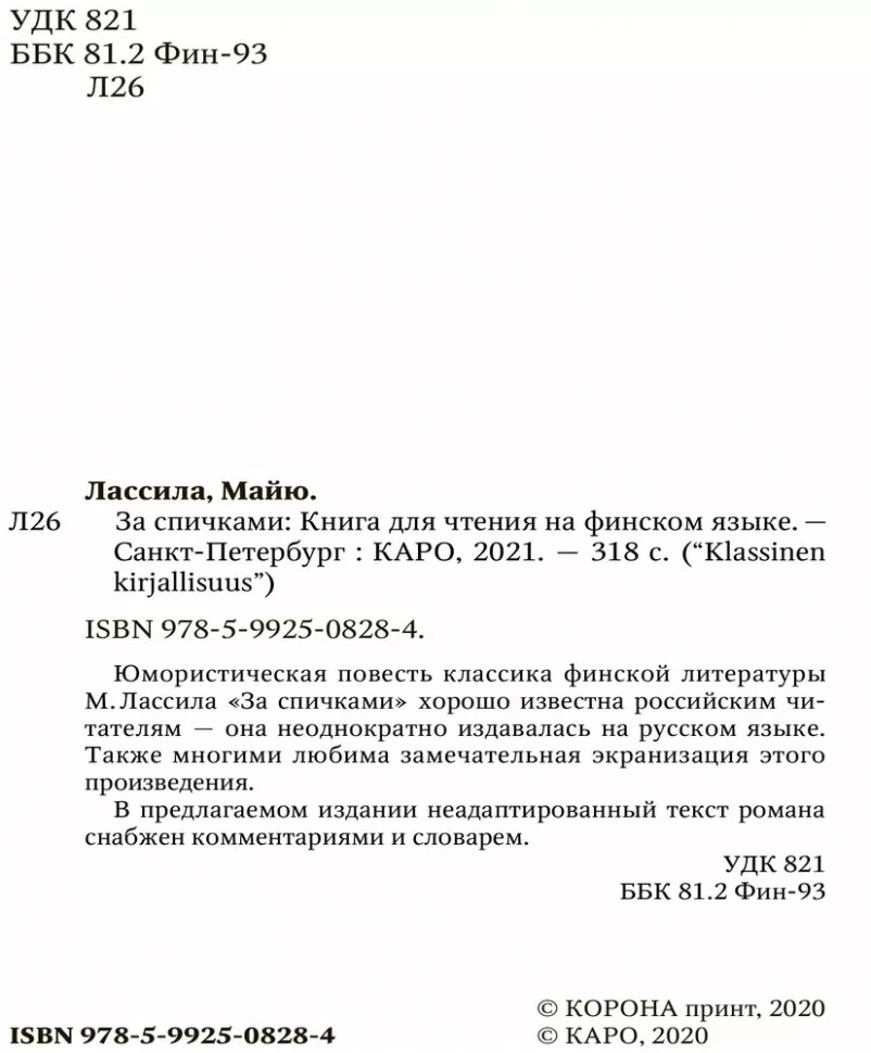 | Серия | Чтение в оригинале. Финский язык |