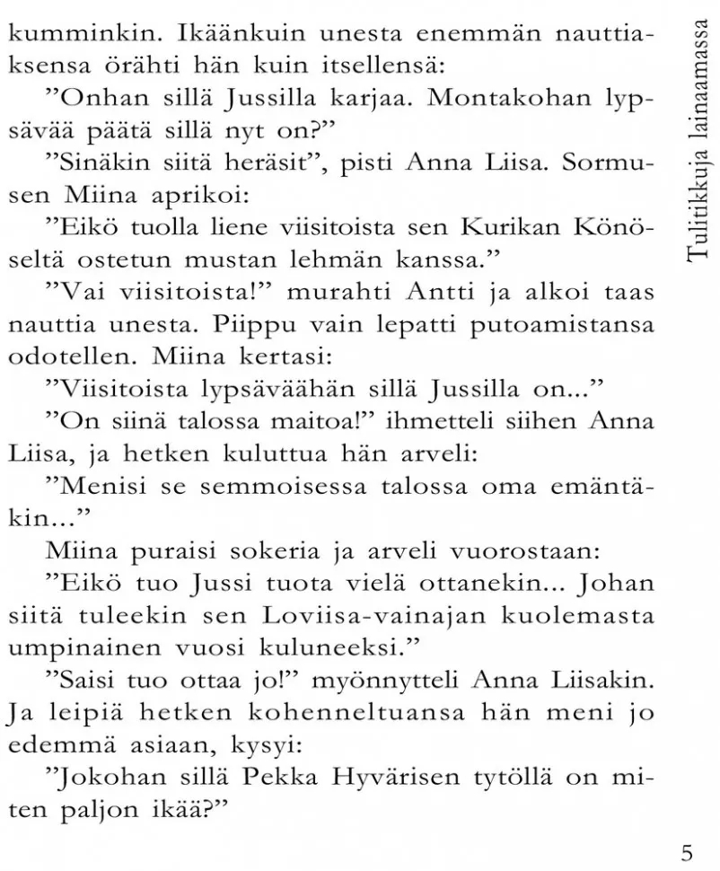 Юмористическая повесть классика финской литературы М. Лассила "За спичками" хорошо известна российским читателям – она неоднократно издавалась на русском языке. Также многими любима замечательная экранизация этого произведения.