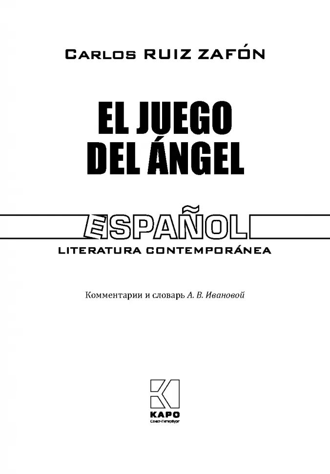 "Игра ангела" – вторая книга знаменитой тетралогии Карлоса Руиса Сафона (первая – "Тень ветра"). Действие происходит в Барселоне в 20-е годы XX века. Автор снова погружает читателя в мистическую вселенную Кладбища забытых книг.