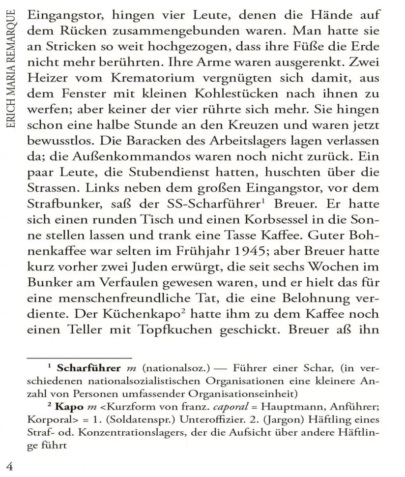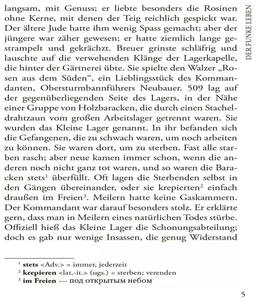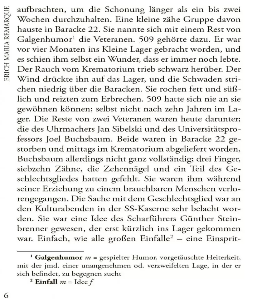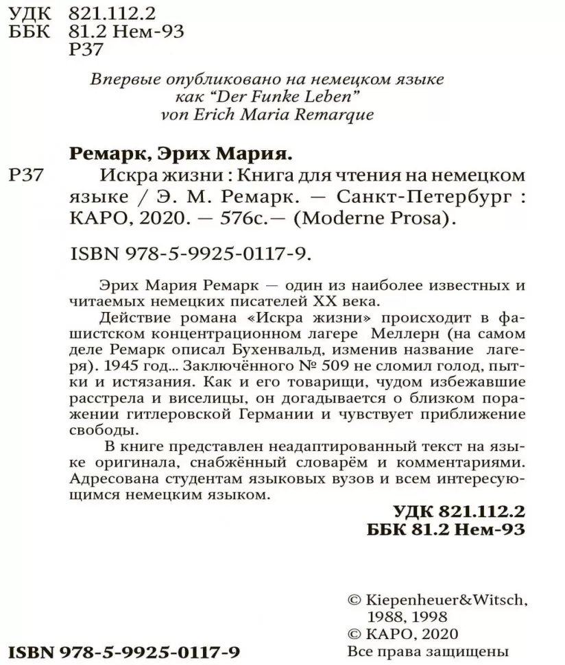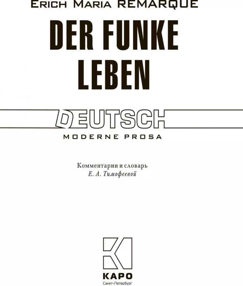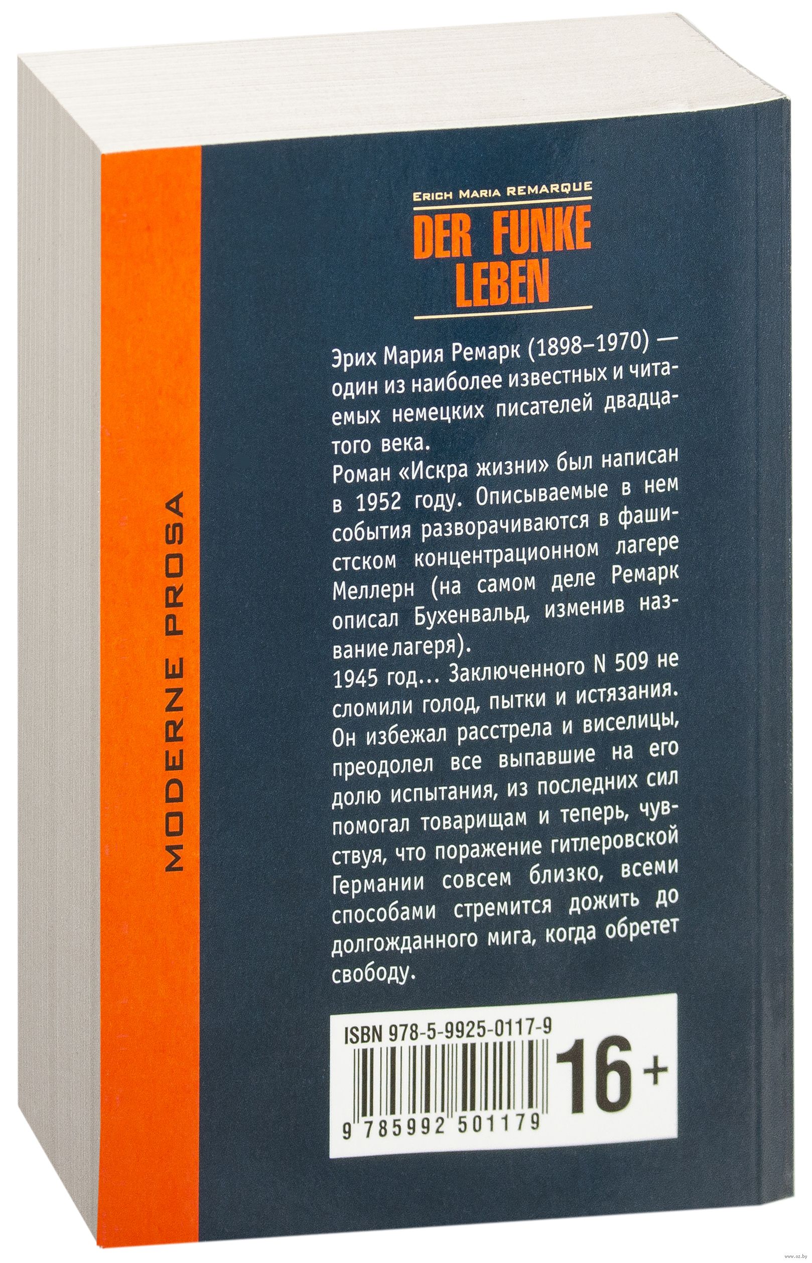 Роман "Der Funke Leben" ("Искра жизни") был написан в 1952 году. Действие романа происходит в фашистском концентрационном лагере Меллерн (на самом деле Ремарк описал Бухенвальд, изменив название лагеря). 1945 год... Заключенного № 509 не сломил голод, пытки и истязания. Как и его товарищи, чудом избежавшие расстрела и виселицы, он догадывается о близком поражении гитлеровской Германии и чувствует приближение свободы.