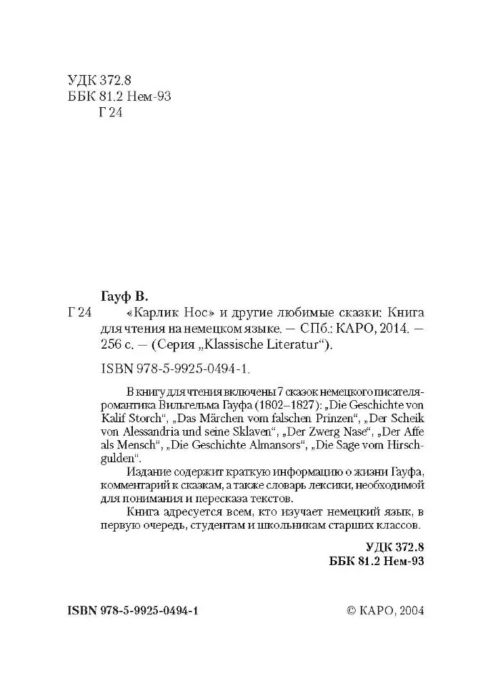 Условия бонусной программы| Название в оригинале | Карлик Нос и другие сказки |