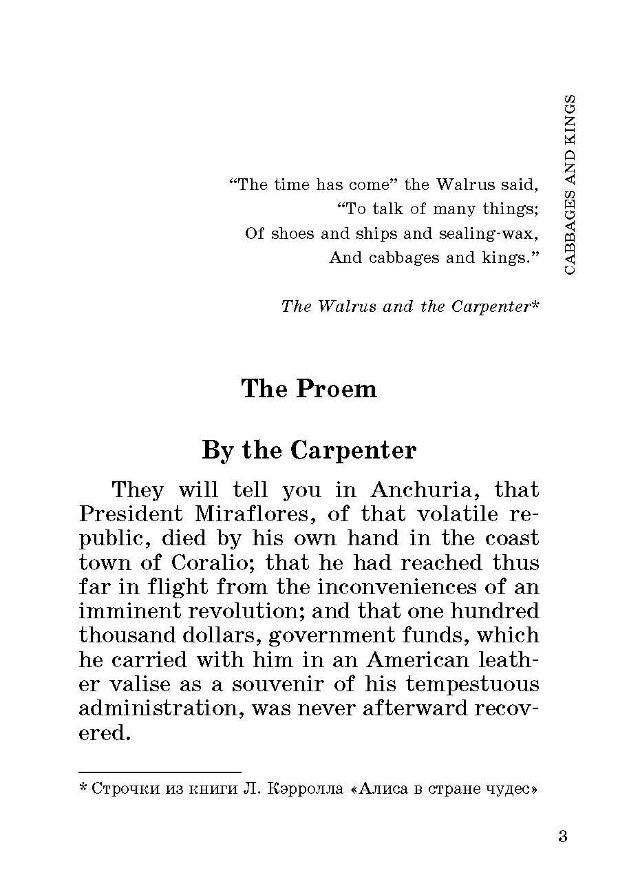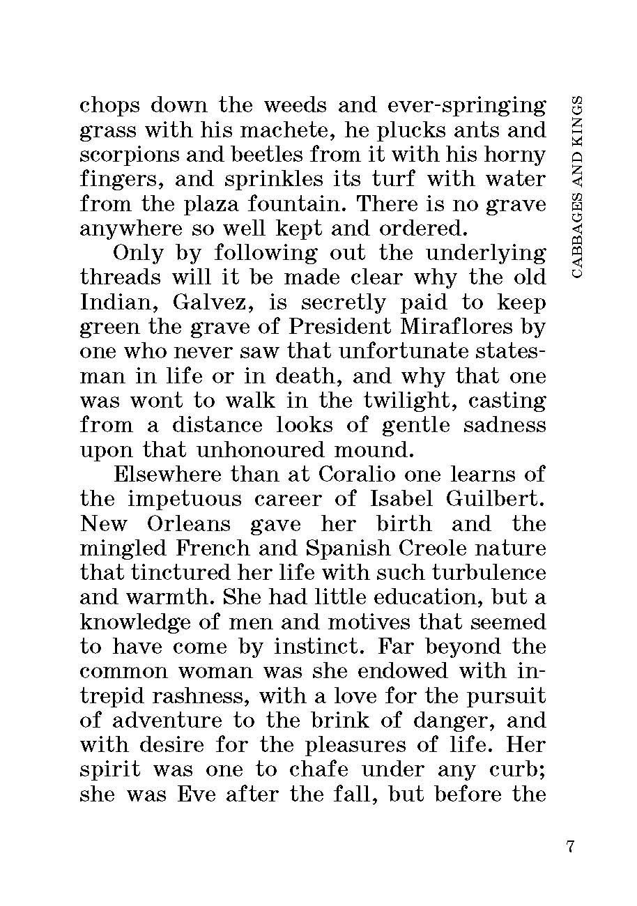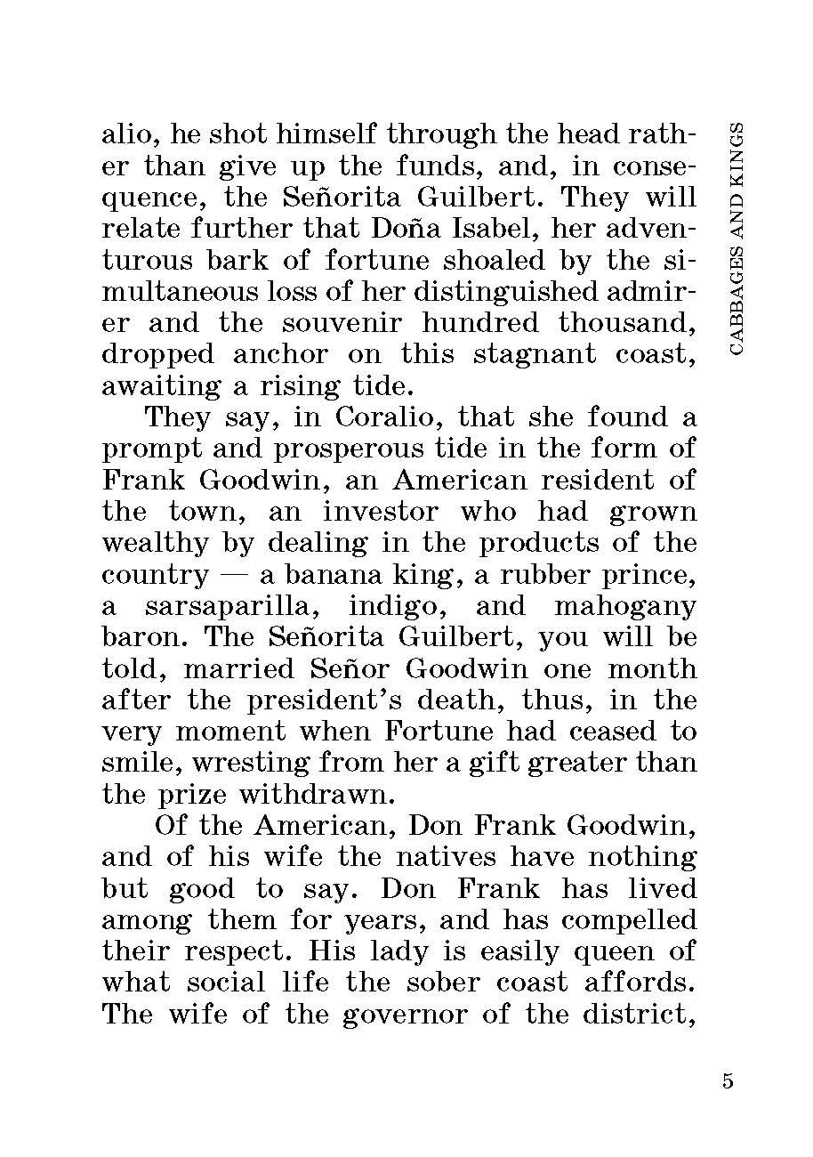 "Короли и капуста" (1904) – сборник авантюрно-юмористических новелл, действие которых происходит в Латинской Америке. Книга отличается занимательным сюжетом и парадоксальной неожиданной развязкой.