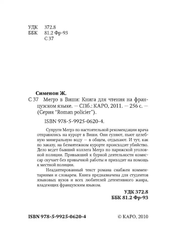 Семьдесят четвёртая книга для изучения иностранного языка из цикла «Комиссар Мегрэ».