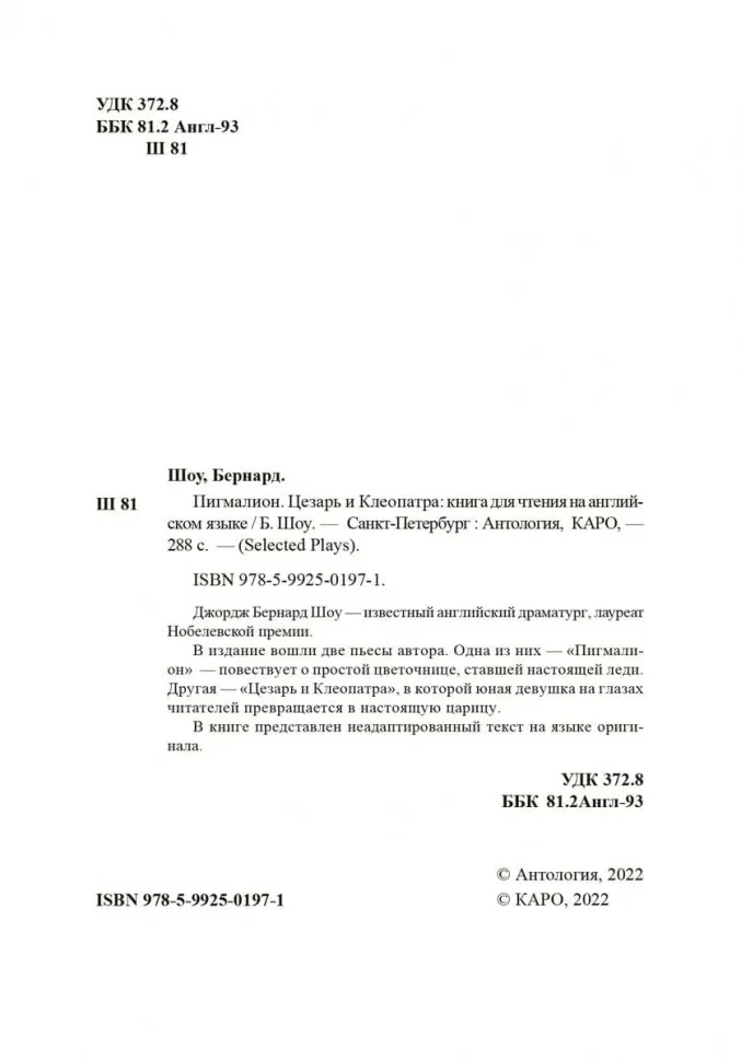 Условия бонусной программы| Название в оригинале | Пигмалион. Цезарь и Клеопатра |