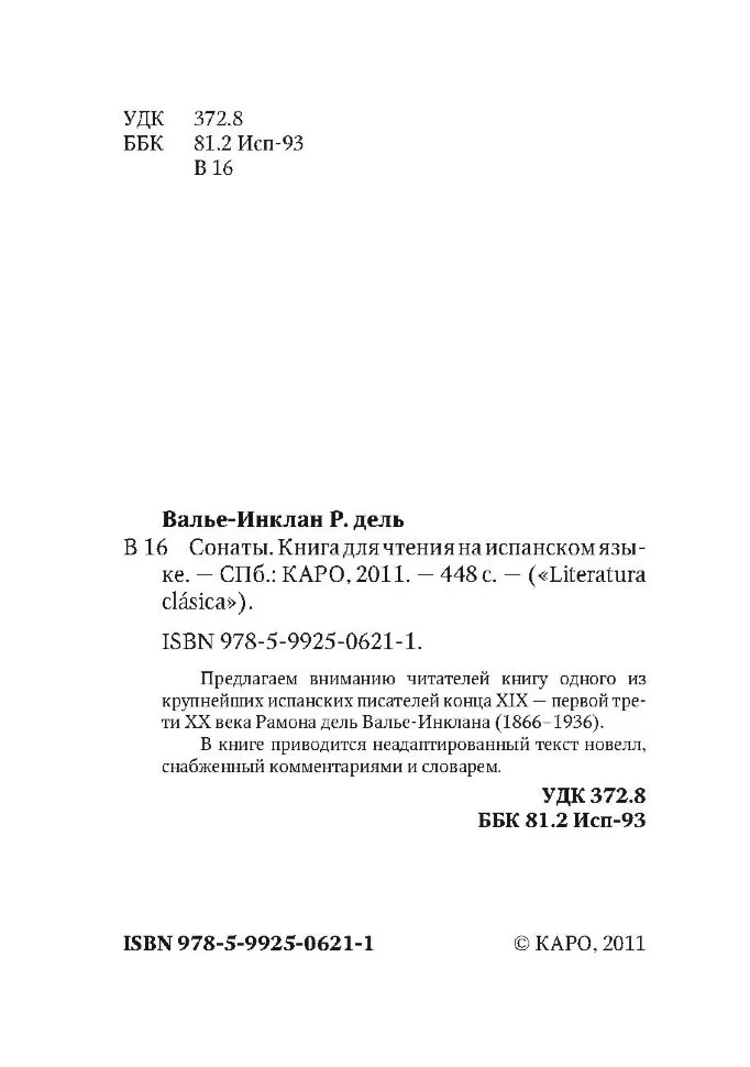 Предлагаем вниманию читателей книгу одного из крупнейших испанских писателей конца XIX – первой трети ХХ века Рамона дель Валье-Инклана (1866-1936). В книге приводится неадаптированный текст новелл, снабженный комментариями и словарем.