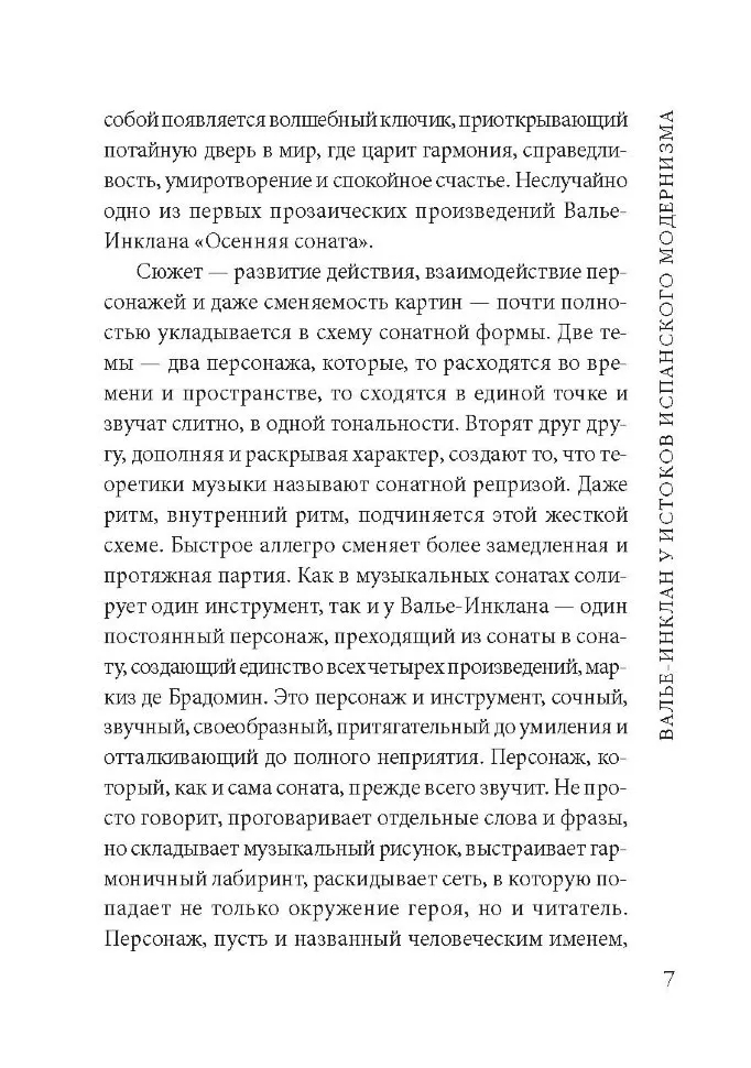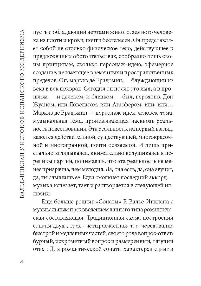 Любимым героем писателя является маркиз де Брадомин, главное действующее лицо его "Сонат" – современный Дон-Жуан, некрасивый, католически настроенный и сентиментальный. В этой романтической фигуре Валье-Инклан хотел воскресить традиционный тип "испанского идальго".
