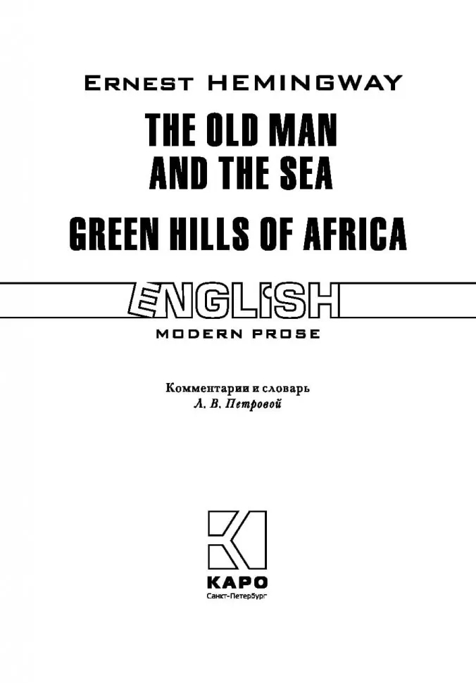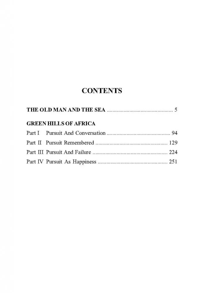 В сборник вошли два произведения: "Старик и море", о вере в нравственные силы человека, и "Зеленые холмы Африки", в котором автор пытается осмыслить творческий путь и эстетические принципы творчества.