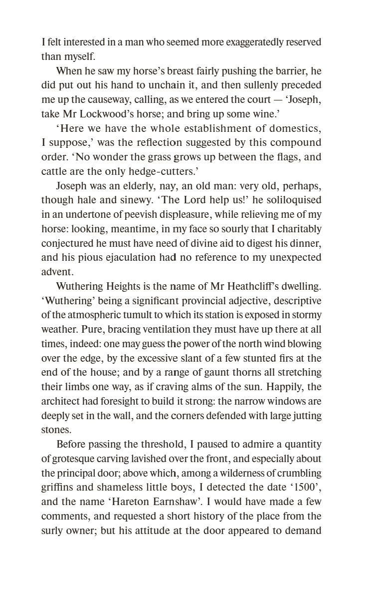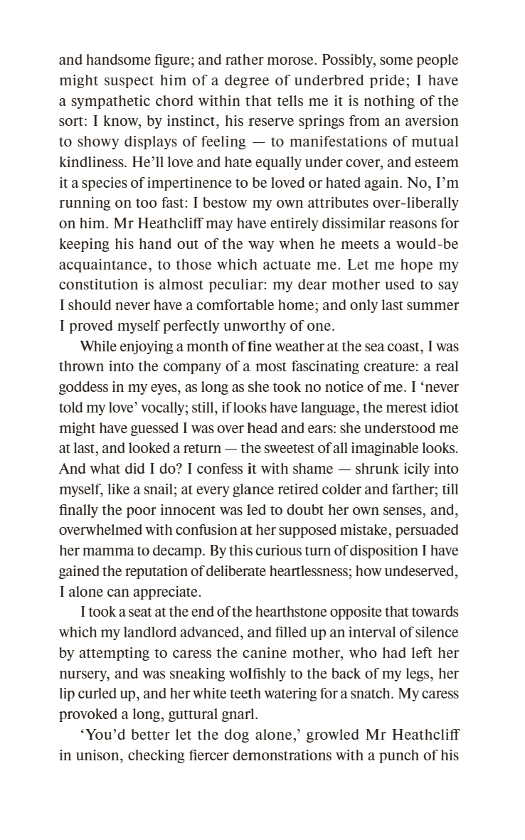 Кэтрин – женщина, пытающаяся жить по своим правилам, сирота Хитклиф, раса и этнос которого оспариваются до сих пор, старый семейный особняк, затерянный посреди вересковых пустошей Йоркшира, явления призраков и смена ненадежных рассказчиков – все это прекрасно образованная Бронте сплетает в загадочное, будоражащее воображение повествование.