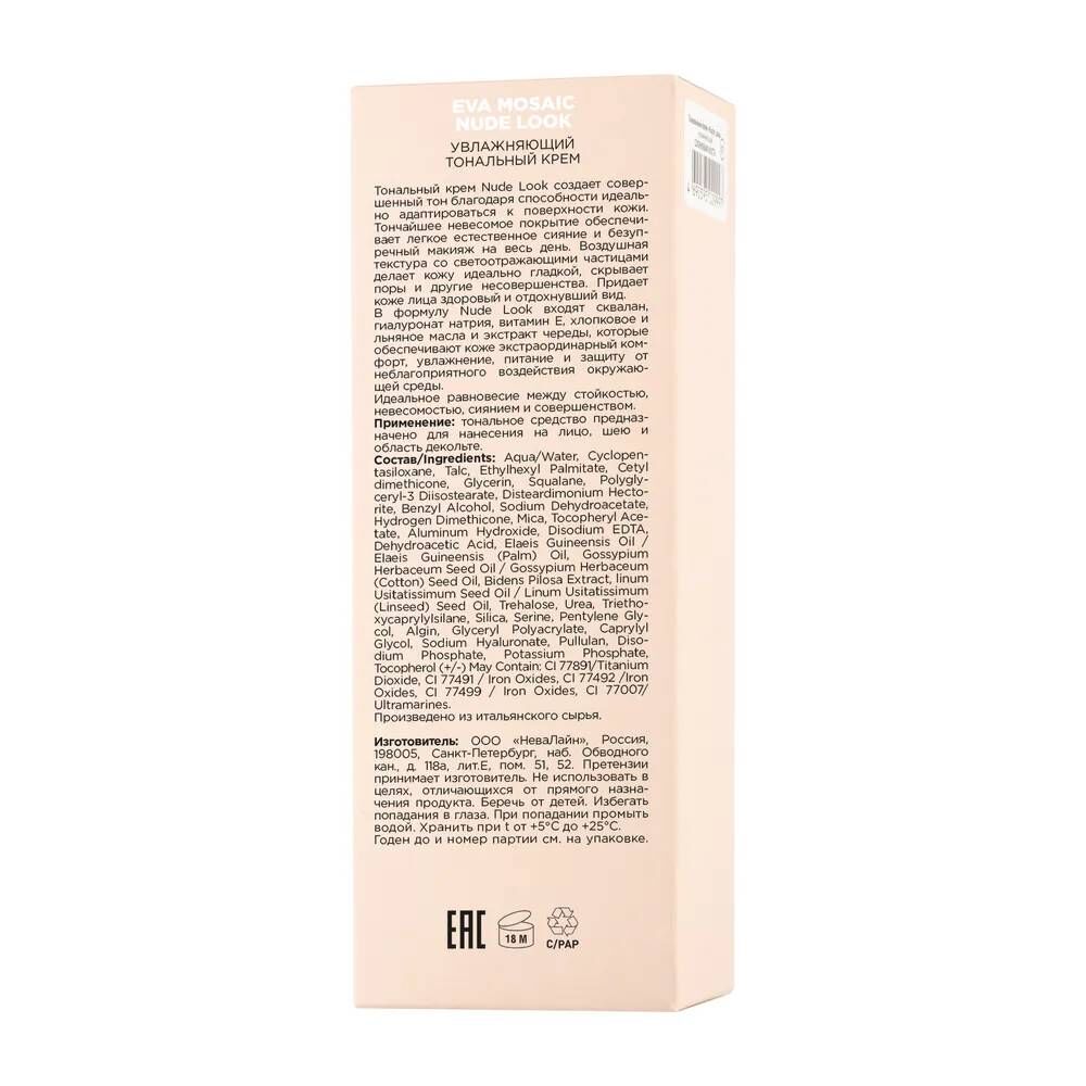 В формулу "Nude Look" входят сквален, гиалуронат натрия, витамин Е, хлопковое и льняное масла и экстракт череды, которые обеспечивают коже экстраординарный комфорт, увлажнение, питание и защиту от неблагоприятного воздействия окружающей среды.