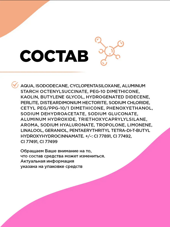 Создает натуральный матовый финиш, придает коже гладкость и бархатистость. Скрывает все несовершенства кожи без эффекта маски.