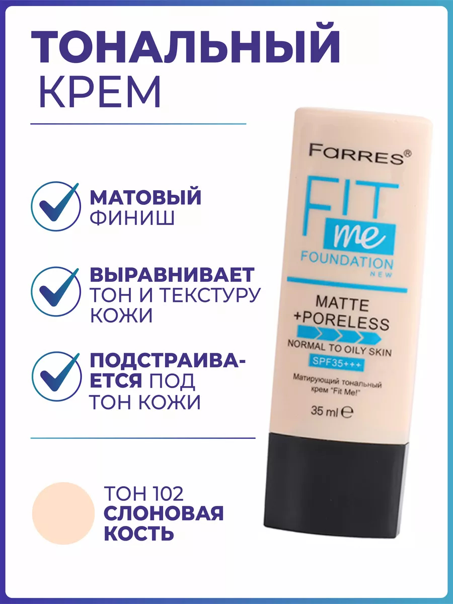 Тональный крем для лица "Fit Me" тон: 102, слоновая кость