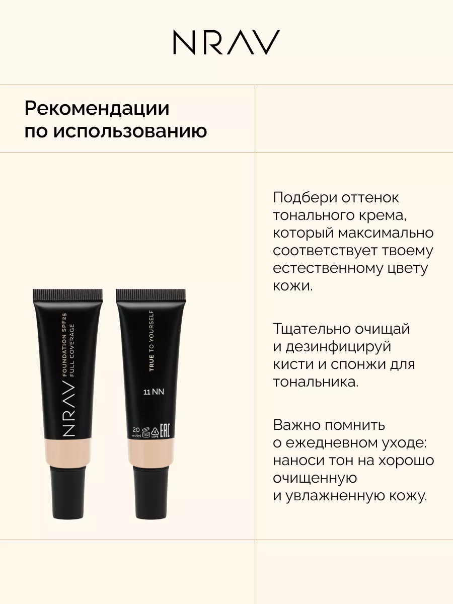 Тональная основа для лица "Полное покрытие" SPF25 тон: 20WY, светло-бежевый