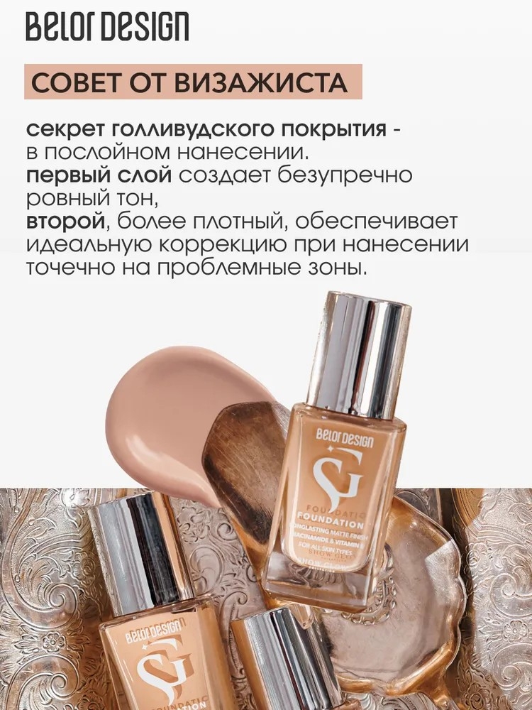 Стойкий тональный крем для лица не только поможет усовершенствовать вид кожи, но и позаботится о ее внешнем состоянии. Формула с ниацинамидом работает на разглаживание текстуры, осветление несовершенств и предотвращает возникновение жирного блеска в течение дня. Как вещество-антиоксидант обладает накопительным действием и подходит для всех типов кожи.