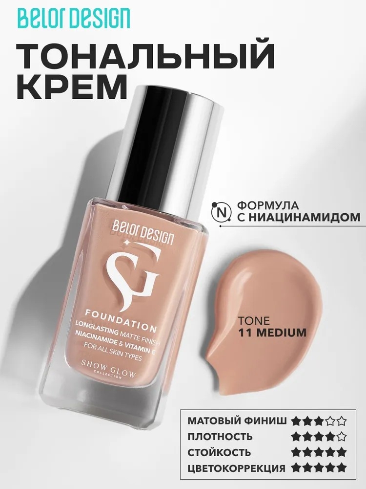 Стойкий тональный крем для лица не только поможет усовершенствовать вид кожи, но и позаботится о ее внешнем состоянии. Формула с ниацинамидом работает на разглаживание текстуры, осветление несовершенств и предотвращает возникновение жирного блеска в течение дня. Как вещество-антиоксидант обладает накопительным действием и подходит для всех типов кожи.