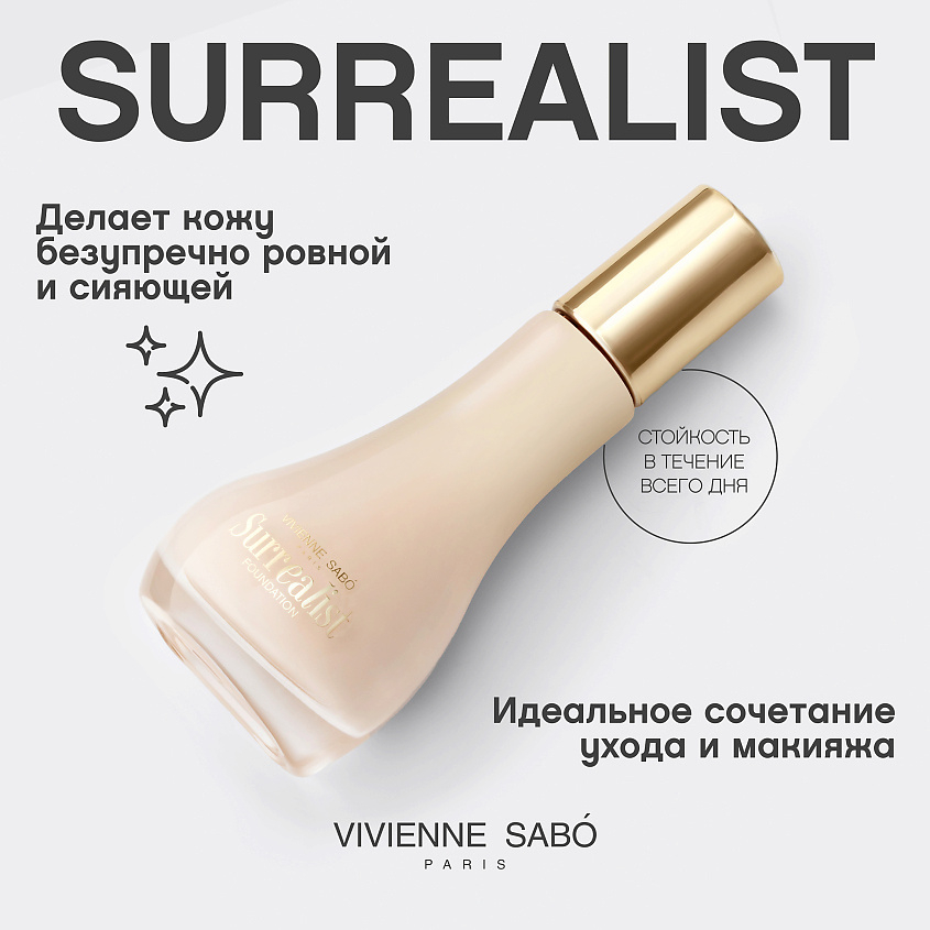 Тональный крем в трех оттенках упакован в изысканный округлый флакон из стекла: он выглядит словно капля, застывшая в движении. С ним каждый макияж превращается в произведение искусства, где твоя кожа становится воплощением утонченной французской эстетики. Surrealist – ключ к миру красоты на грани реальности.