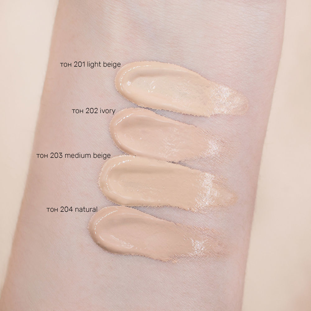 Обладает стойким покрытием средней плотности, естественным образом разглаживает текстуру кожи, скрывает несовершенства и делает тон лица идеально ровным, оставляя бархатистый финиш на весь день.