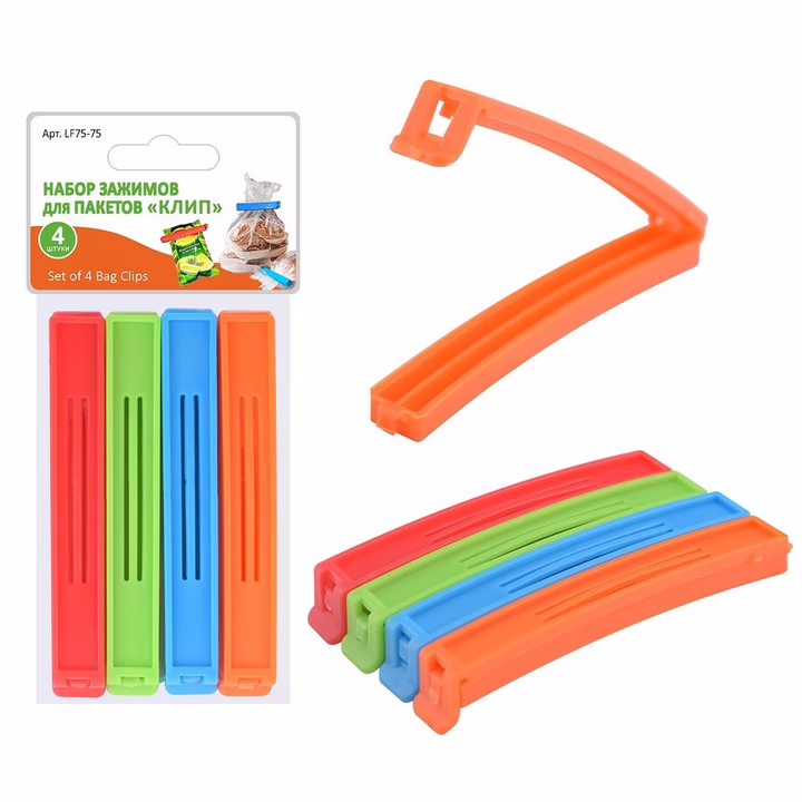 Зажимы для пакетов полезны в быту, они позволяют быстро и герметично упаковывать пакеты с крупами, сахаром и другими сыпучими продуктами. Также они подходят для пакетов с жидкостями – пачек с кефиром, молоком, готовыми супами и т.д. Набор зажимов для пакетов предназначен для многоразового использования, легко закрывается и открывается.
