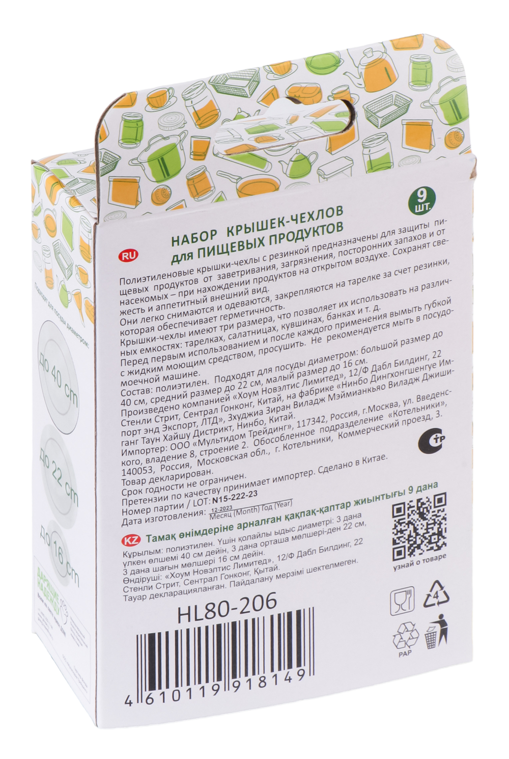 Набор крышек-чехлов для пищевых продуктов "Мультидом" (9 шт.)