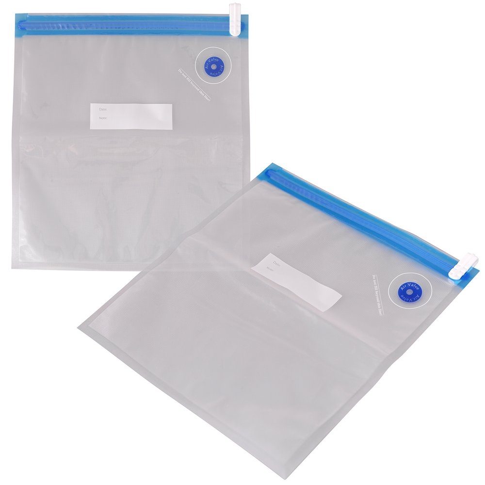 В вакуумных пакетах продакты остаются свежими в несолько раз дольше, чем в обычных пакетах. Благодаря ваккуму они становятся компактными и экономят место в холодильнике или морозильной камере. При низкой температуре воды (50-60 гр. С) продукты можно варить в пакетах, что позволит сохранить сочность продукта и полезные вещества, которые обычно теряются при варке.