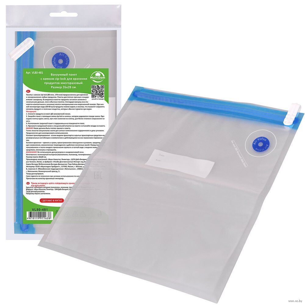 Также имеется специальное место для записи наименование содержимого и даты упаковки. Предназначен для многоразового использования.