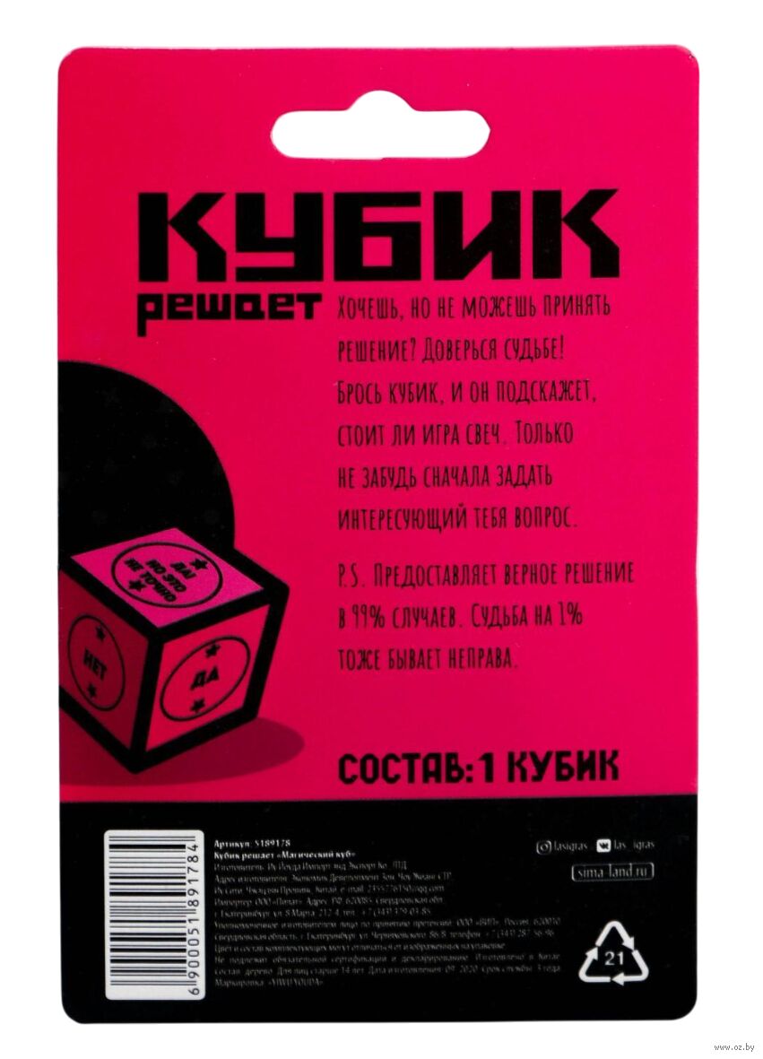 Не можете принять решение? Доверьтесь судьбе! Бросьте кубик, и он подскажет, стоит ли игра свеч. Только не забудьте сначала задать интересующий вас вопрос!