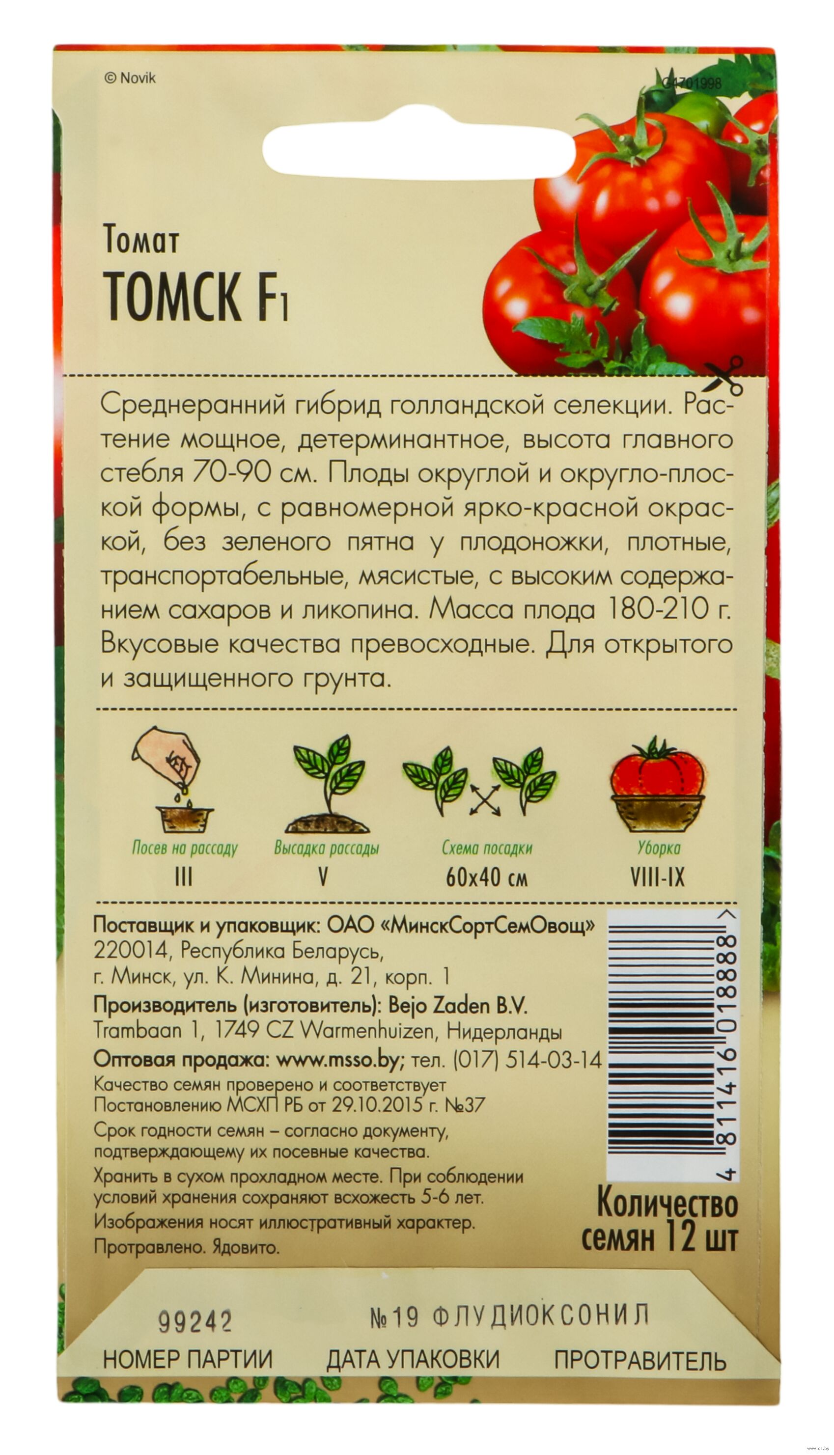 Среднеранний гибрид голландской селекции. Растение мощное, детерминантное, высота главного стебля 70-90 см.