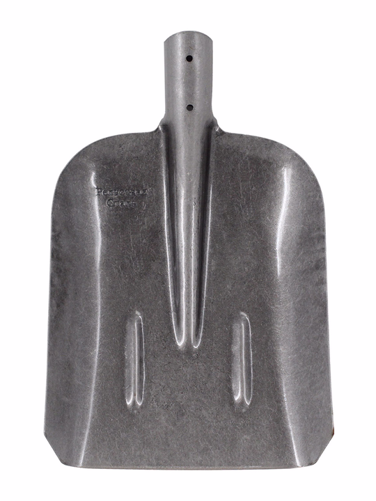 Лопата совковая из рельсовой стали с рёбрами жёсткости, без черенка, тулейка диаметром 40 мм, серая.